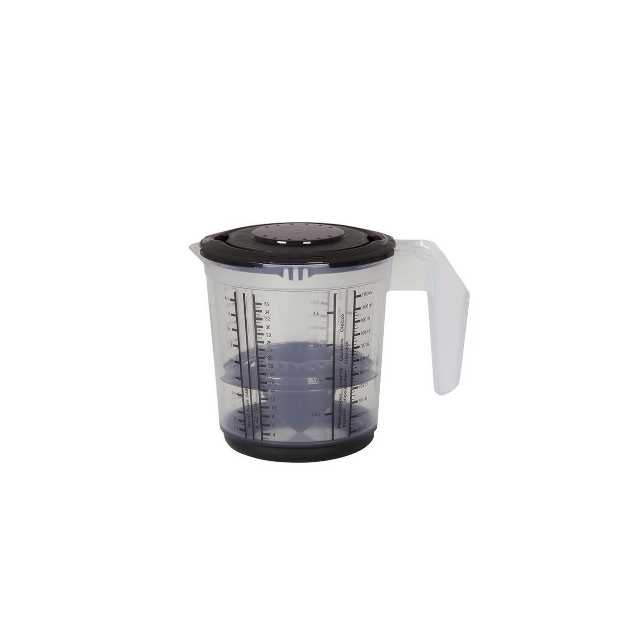 Cana gradata cu capac si storcator citrice, Keeeper, 1 L, plastic, antracit