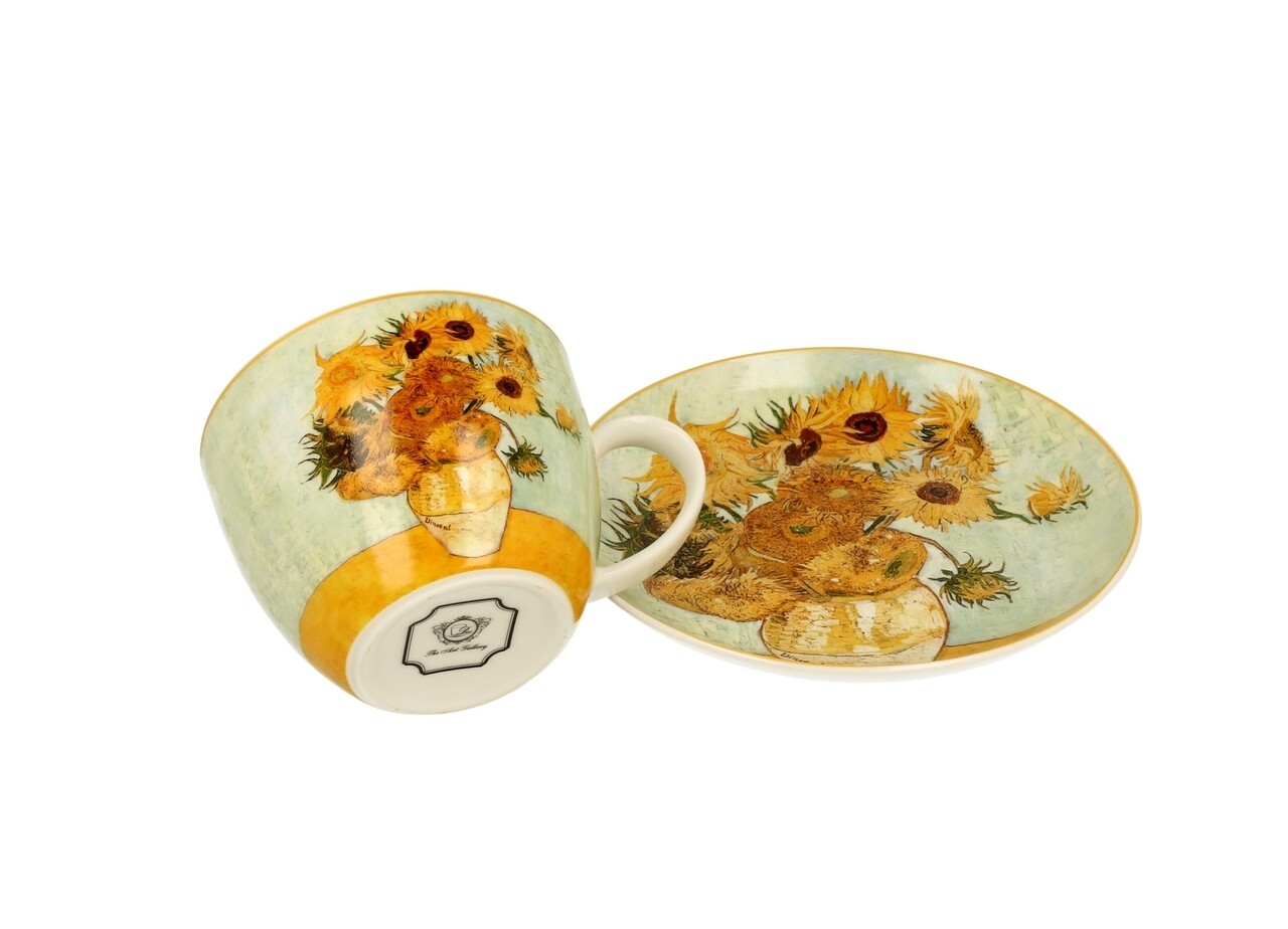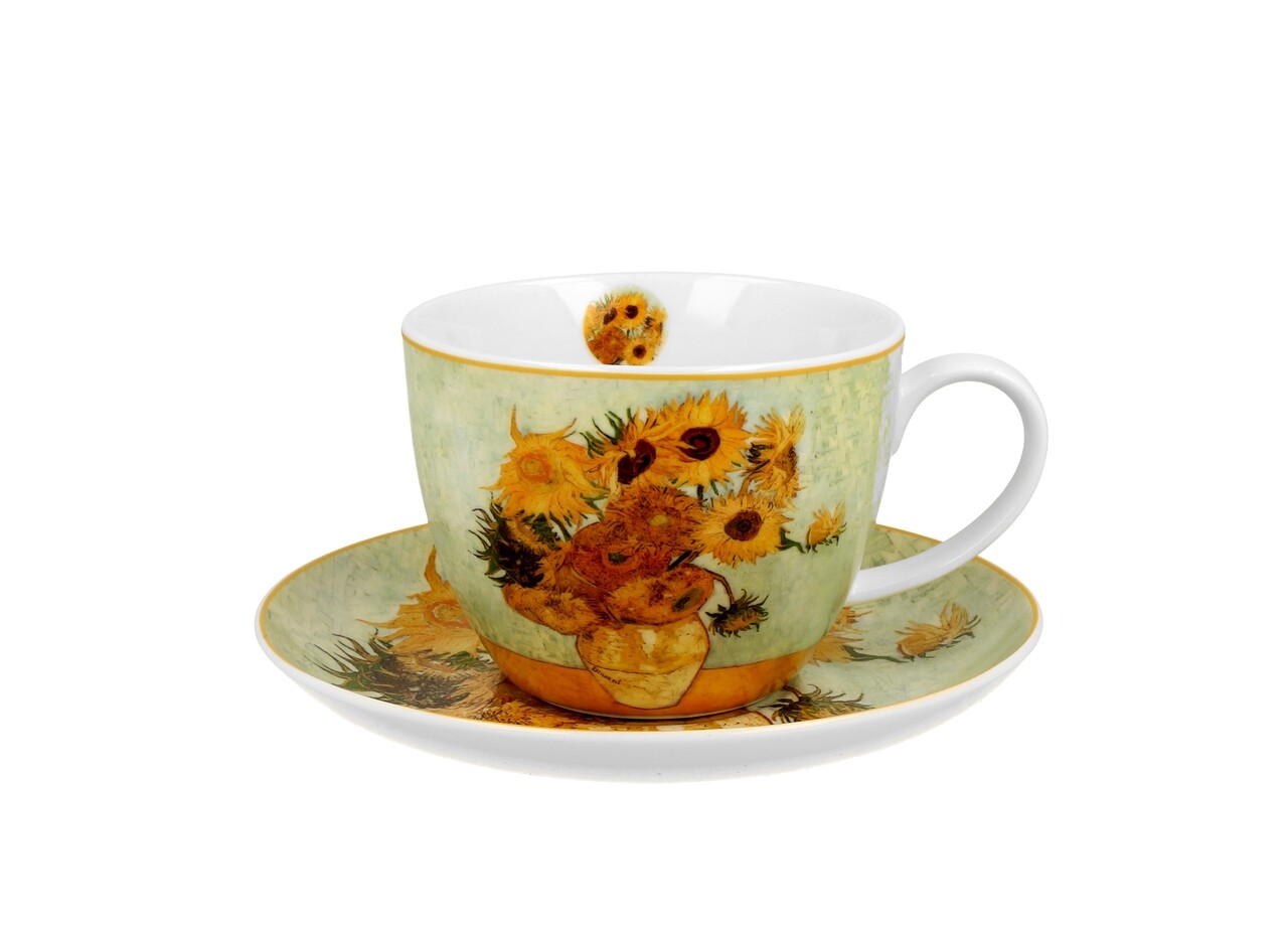 Cana Jumbo cu farfurie, DUO, Vincent Van Gogh - Sunflowers, 450 ml, portelan, multicolor