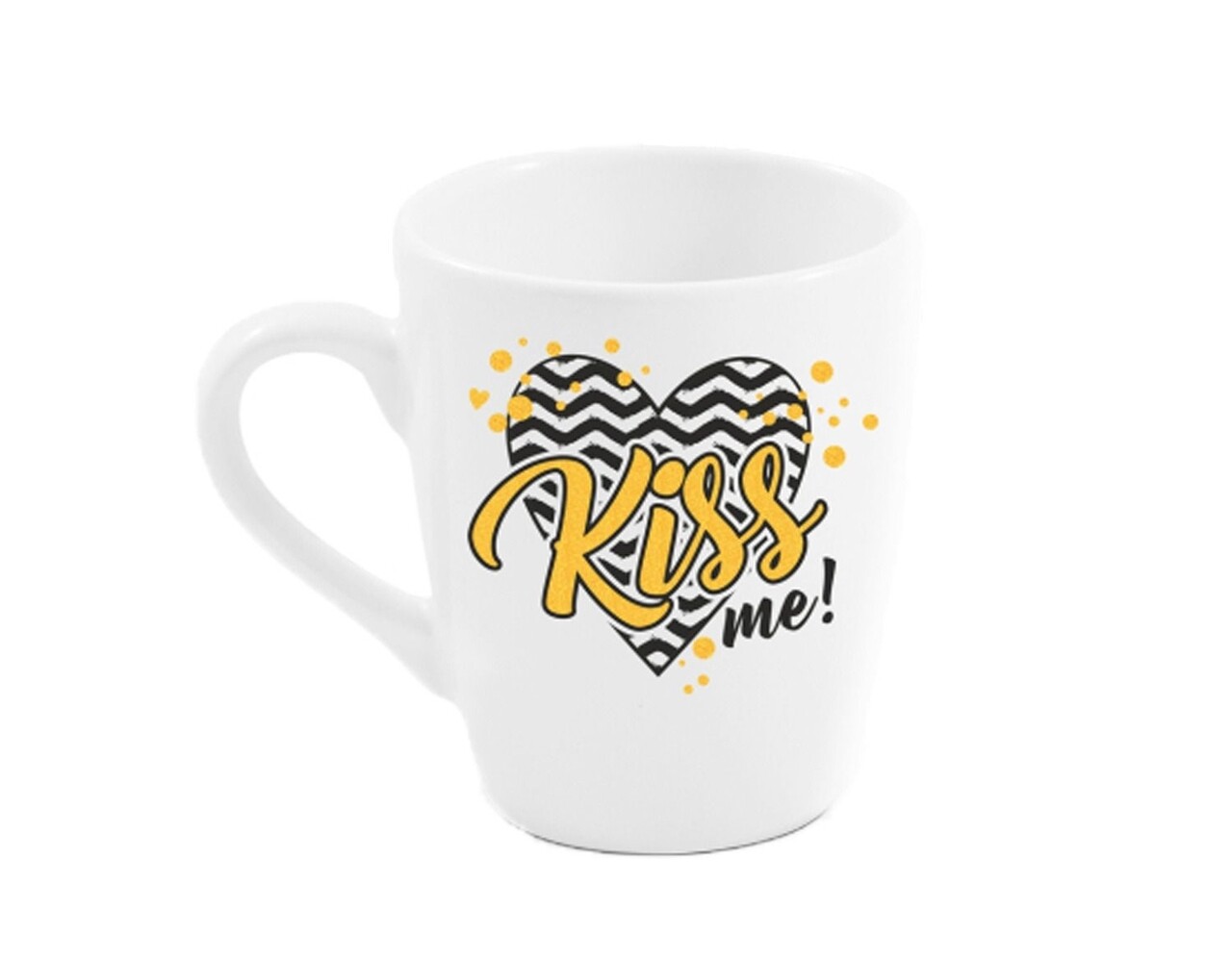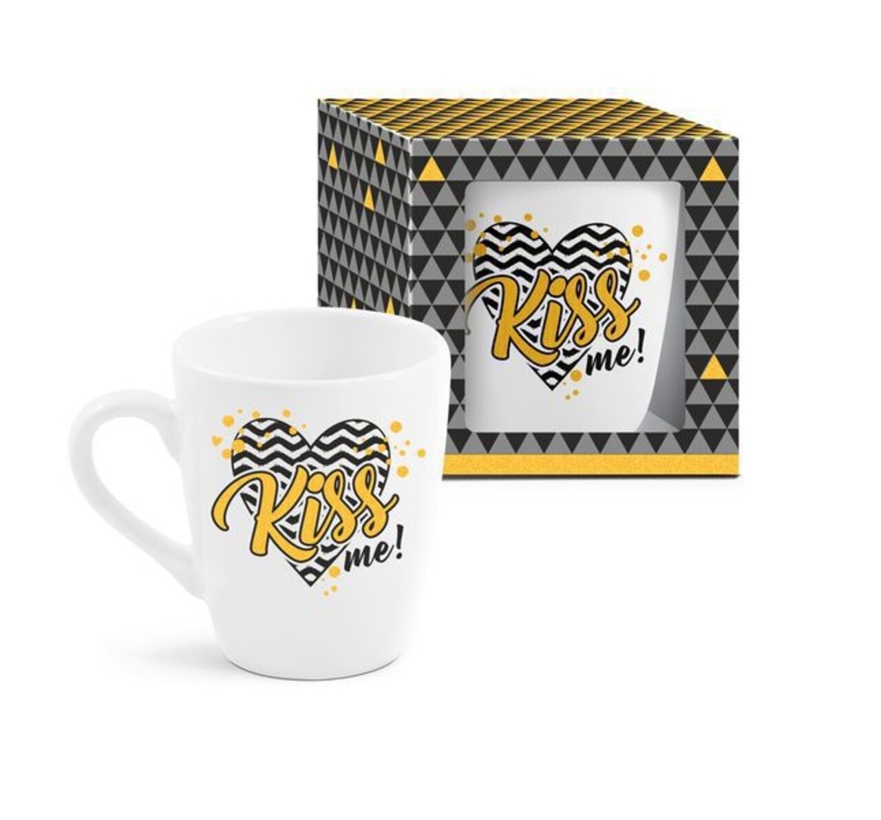 Cana Kiss Me, 300 ml, portelan, negru/auriu