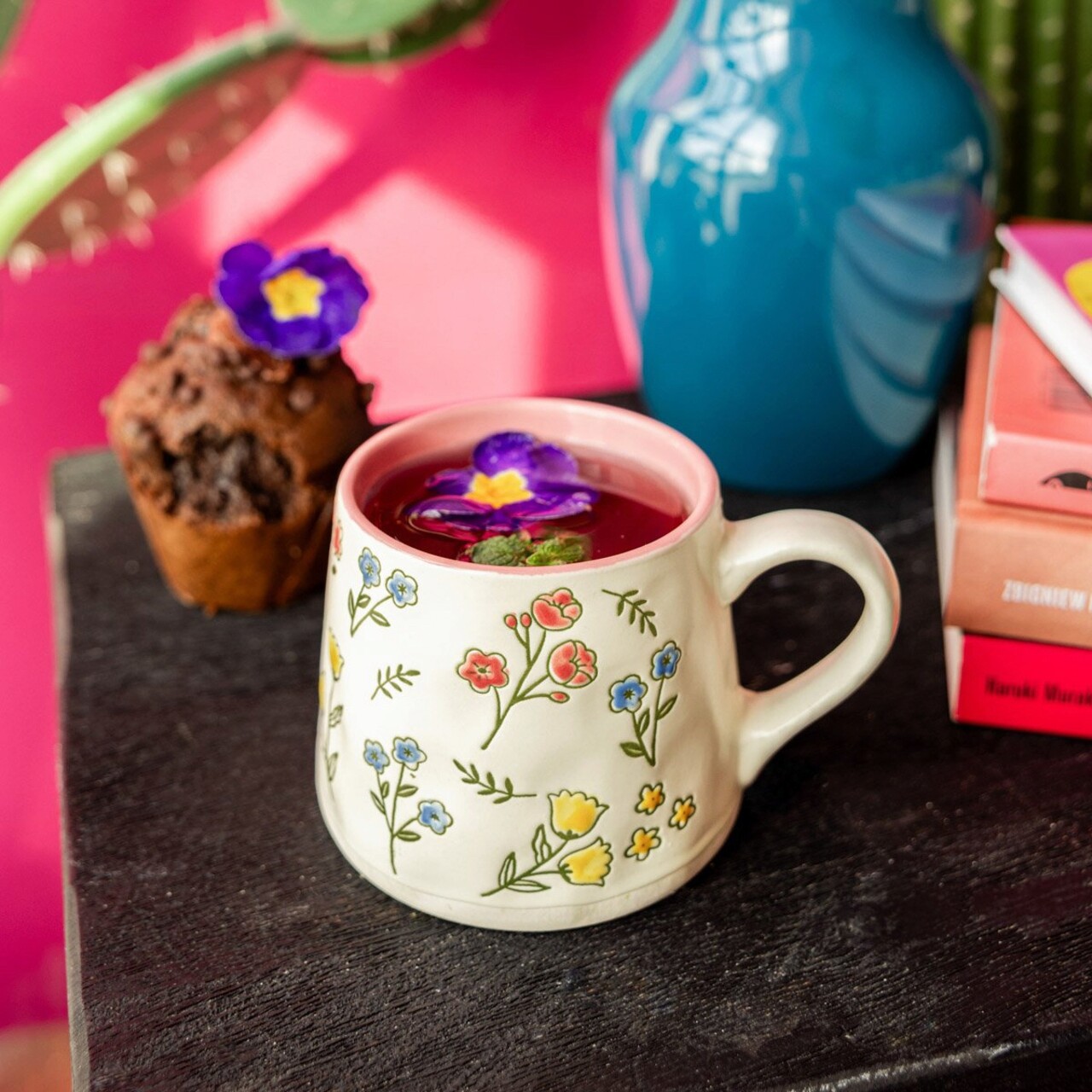 Cana model flori si frunze Malis, Homla, 350 ml, ceramica, multicolor