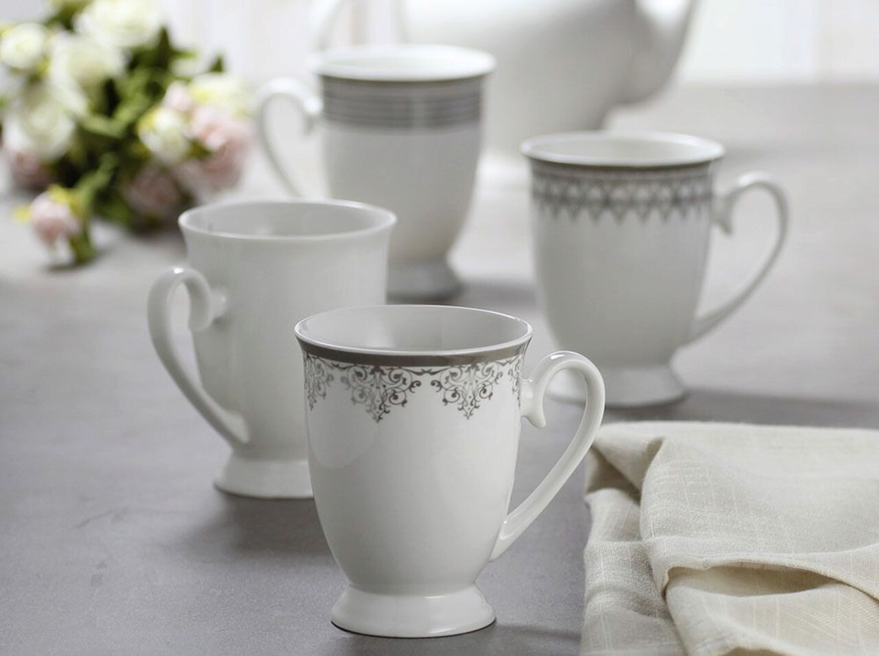 Cana din portelan de inalta calitate, cu o capacitate de 300 ml si un design clasic, elegant. Se poate spala in conditii de siguranta in masina de spalat vase si poate fi introdusa in cuptorul cu microunde.