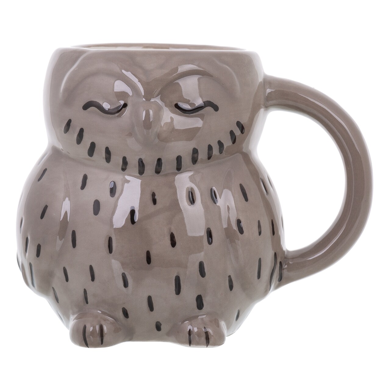 Cana, Owl, Creaciones Meng, 13x10x9 cm, ceramica, gri