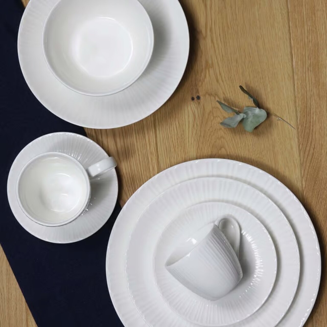 Colectia de vesela Perla se caracterizeaza printr-un design elegant. Perfect pentru sarbatori de familie, precum si pentru utilizarea de zi cu zi. Fabricat din portelan New Bone China de inalta calitate. Marginea canii a fost decorata cu un relief care seamana cu aspectul unei scoici de mare.