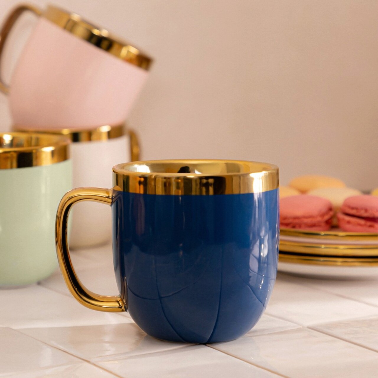 Cana Sinnes, Homla, 280 ml, portelan, albastru/auriu