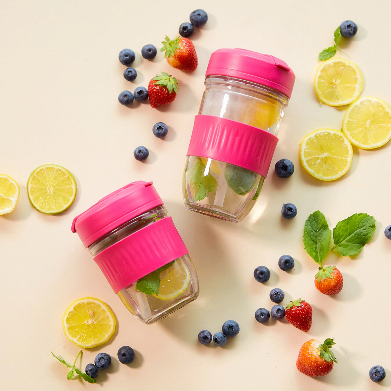 Cana termos ideala pentru bauturile reci. Realizata din sticla cu banda din silicon ce asigura confort si o prindere sigura.