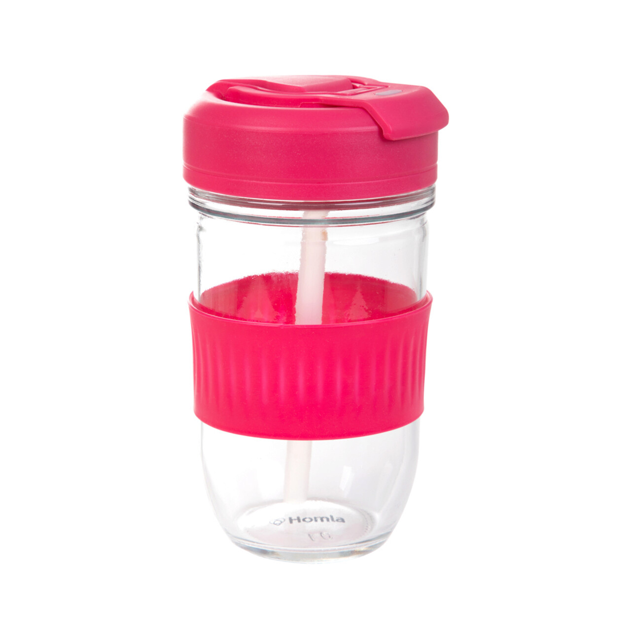 Cana termos Ideus, Homla, 500 ml, sticla/silicon, transparent/roz