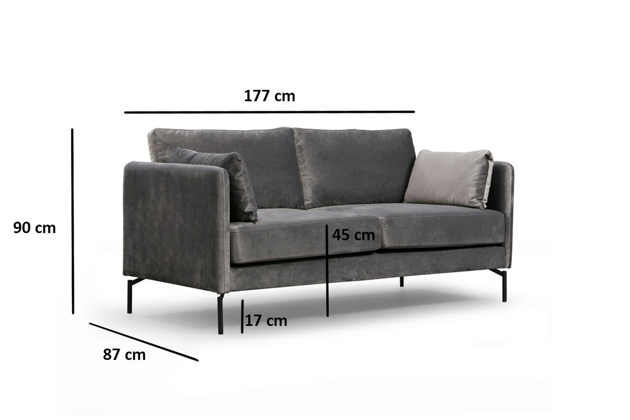 Canapea 2 locuri, Artie, 560ARE1314, Lemn de fag / PAL, Gri