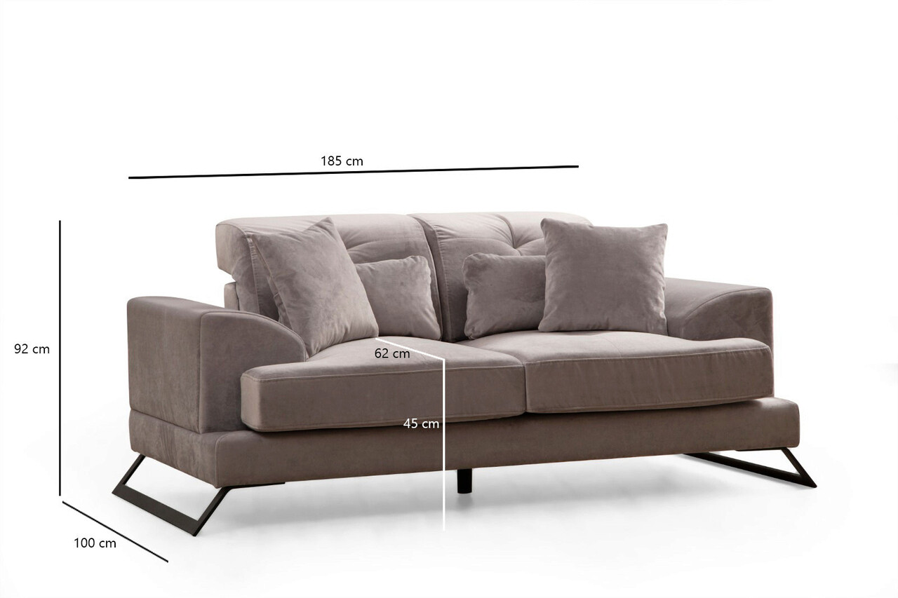 Canapea 2 locuri, Artie, 560ARE1522, Lemn de fag / PAL, Gri deschis