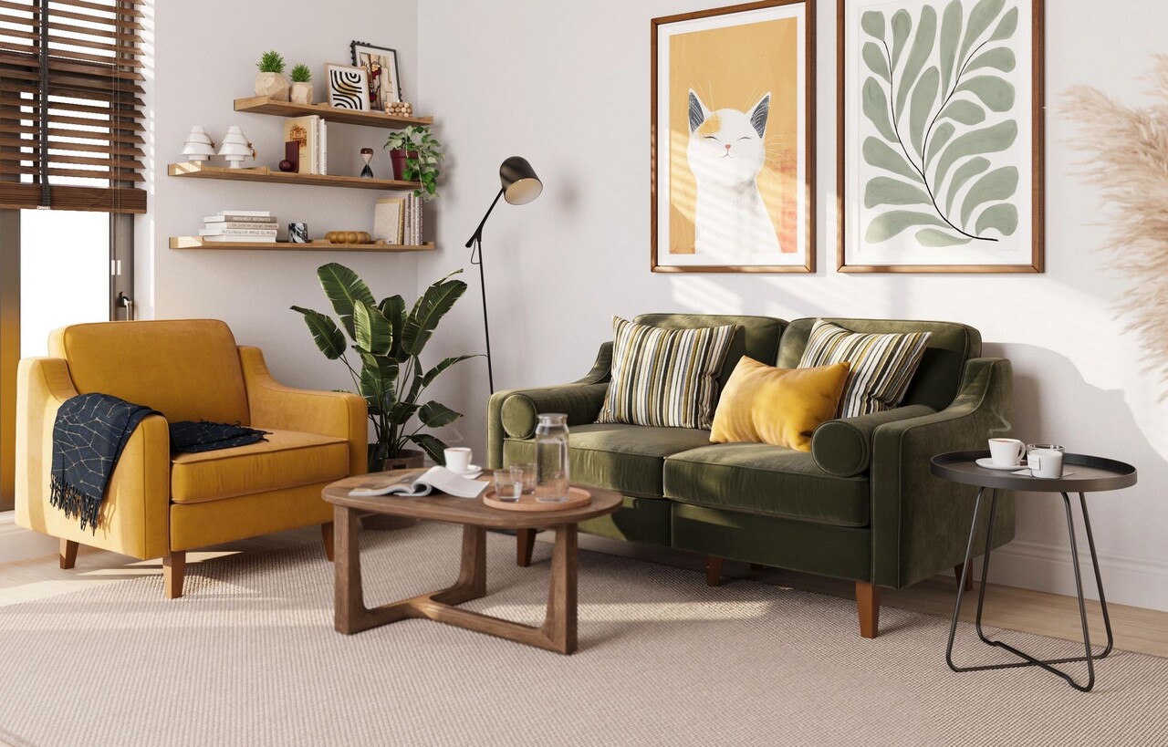 Canapea 2 locuri, Atelier del Sofa, 918CMF1140, Otel, Verde ulei / Nuc