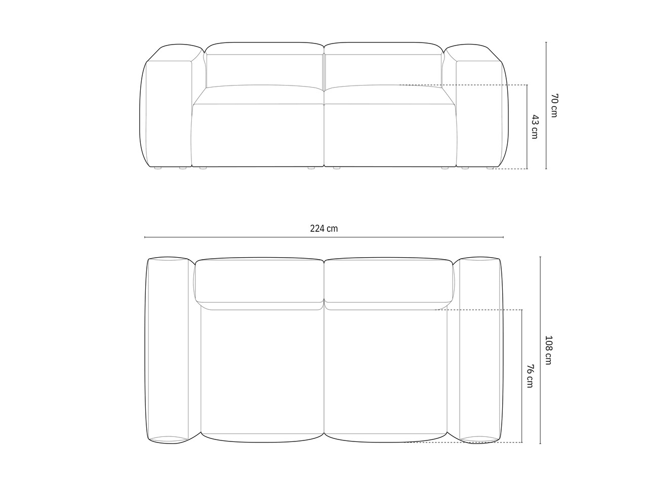 Canapea 2 locuri, Bergamo, Cosmopolitan Design, 224x108x70 cm, tesatura structurata, albastru navy