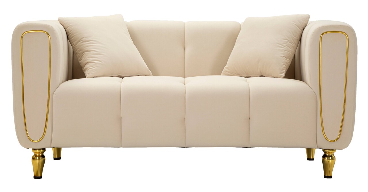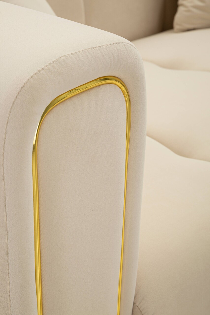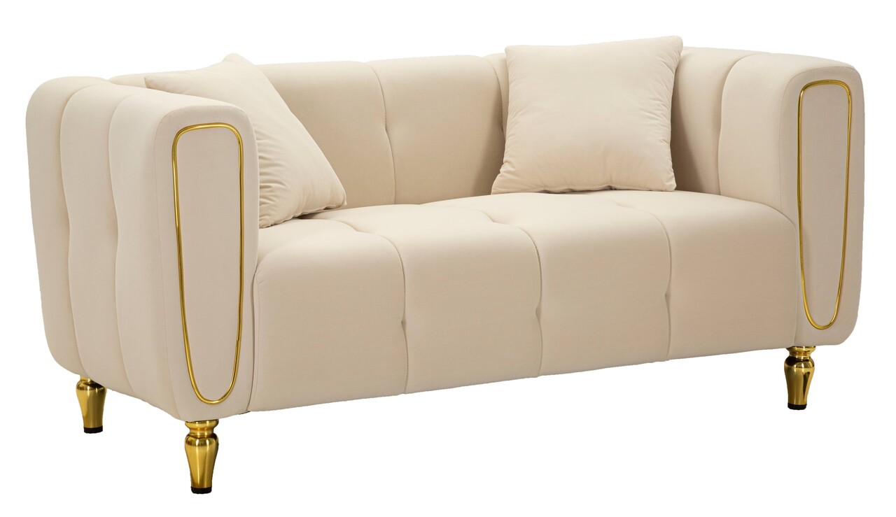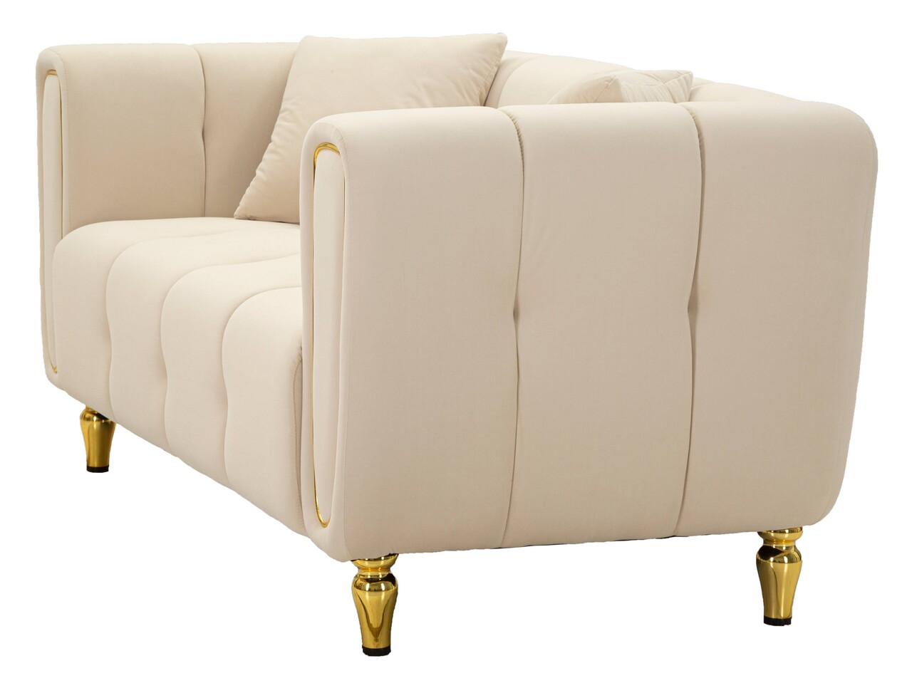 Canapea 2 locuri cu perne Alma, Mauro Ferretti, 155x81x71 cm, eucalipt/pin/catifea, crem/auriu