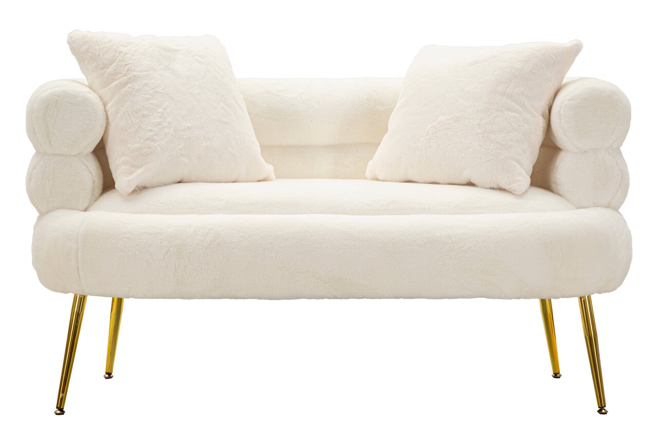 Canapea 2 locuri cu perne Soffy, Mauro Ferretti, 133x68x69 cm, lemn de pin/poliester, alb/auriu