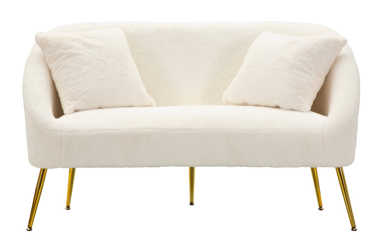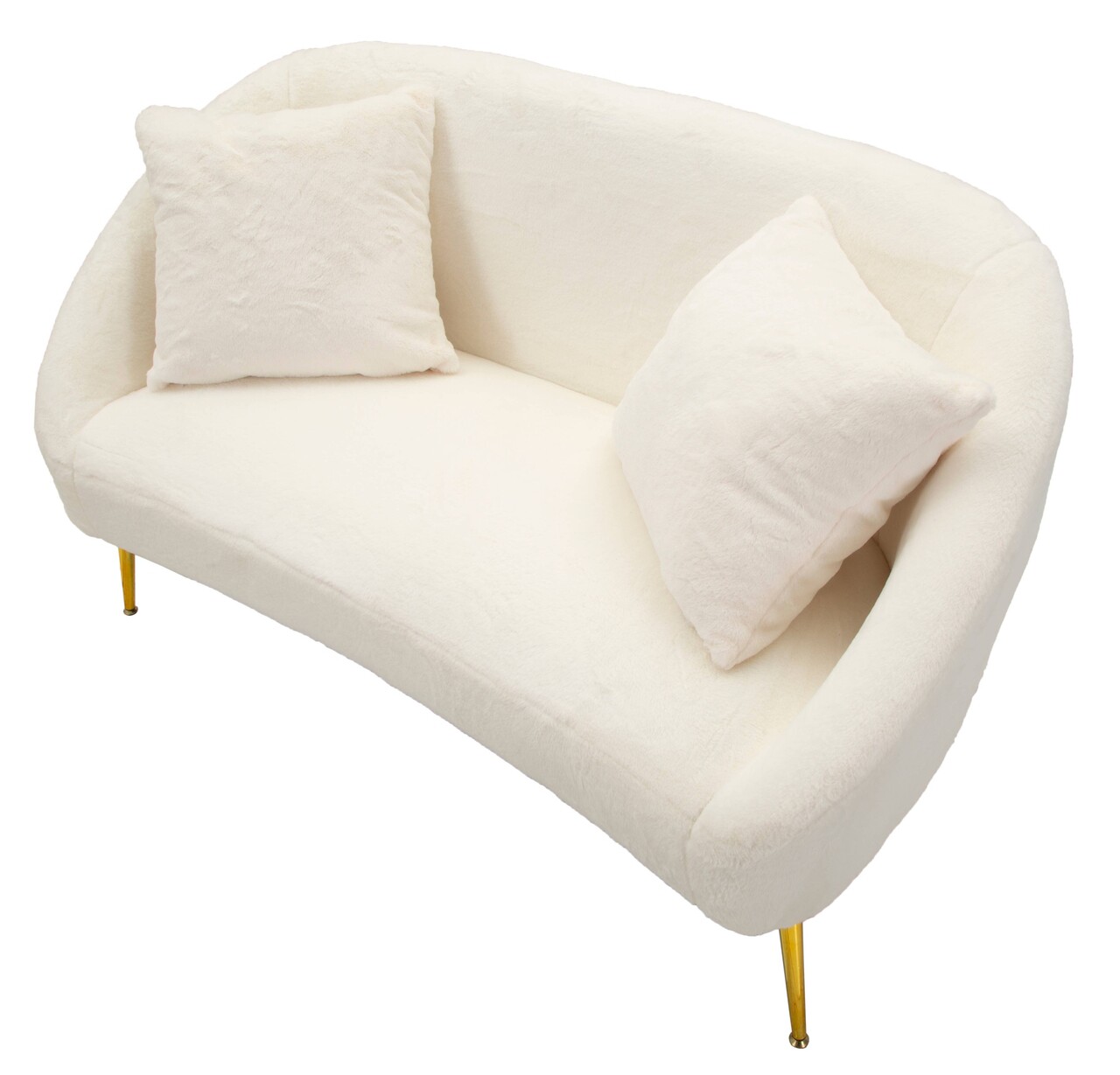 Canapea 2 locuri cu perne Soffy, Mauro Ferretti, 137x69x79 cm, lemn de pin/poliester, alb/auriu
