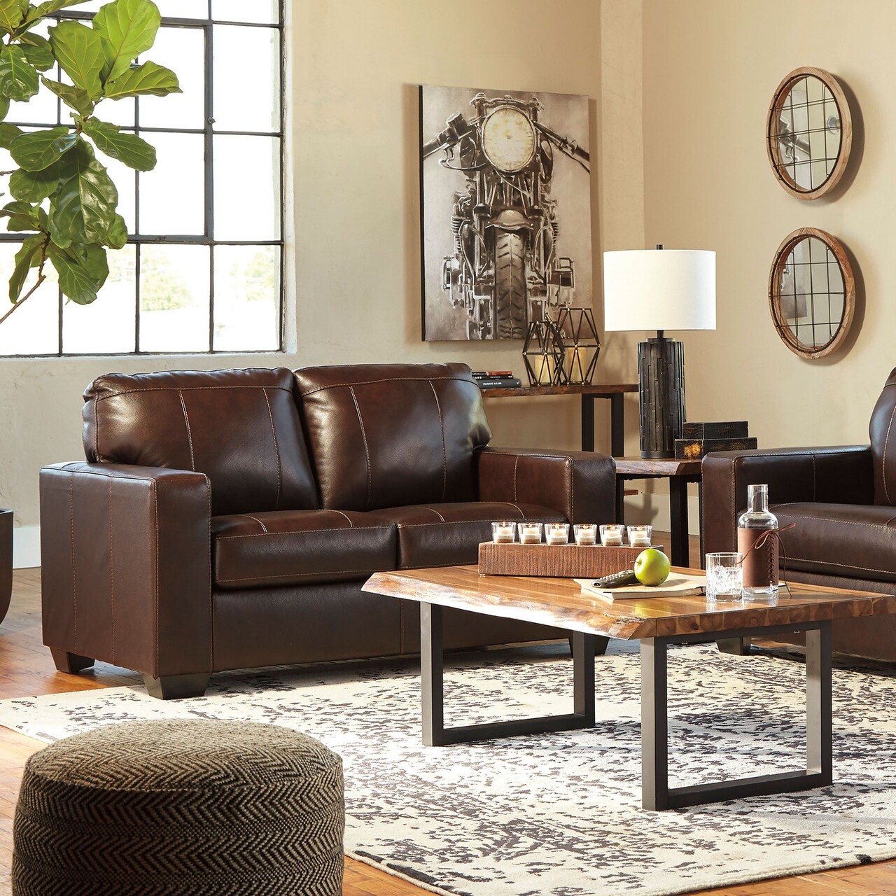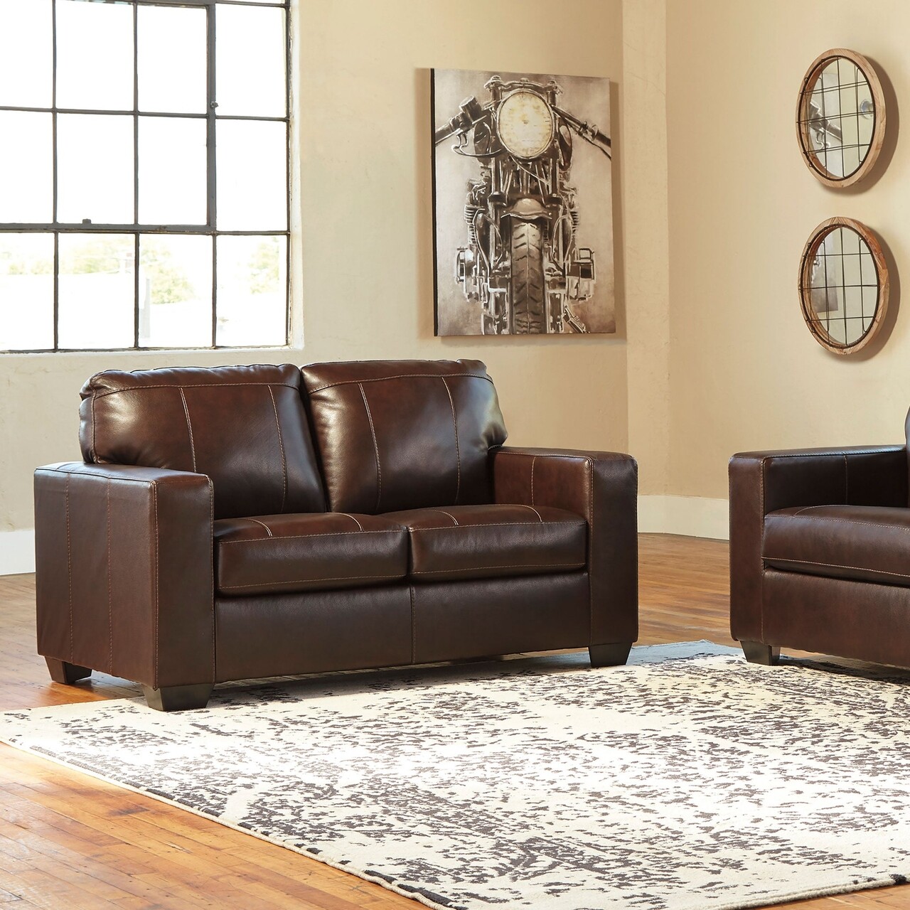 Canapea 2 locuri, Damaso, L.157 l.96 H.94, piele/piele ecologica, maro