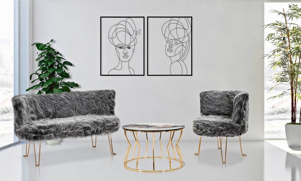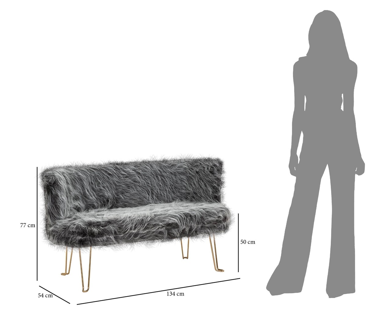 Canapea 2 locuri Hacil, Mauro Ferretti, 134x54x77 cm, gri