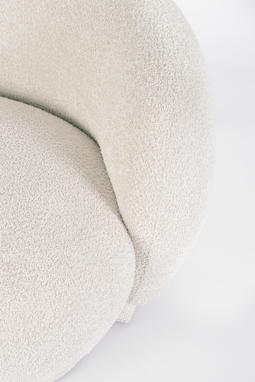 Cadru din placaj. Tapiterie din poliester cu efect "Boucle". Umplutura din spuma poliuretanica (densitate 25 kg/m3 pentru sezut, 18 kg/m3 pentru spatar). Inaltime sezut: 46 cm.