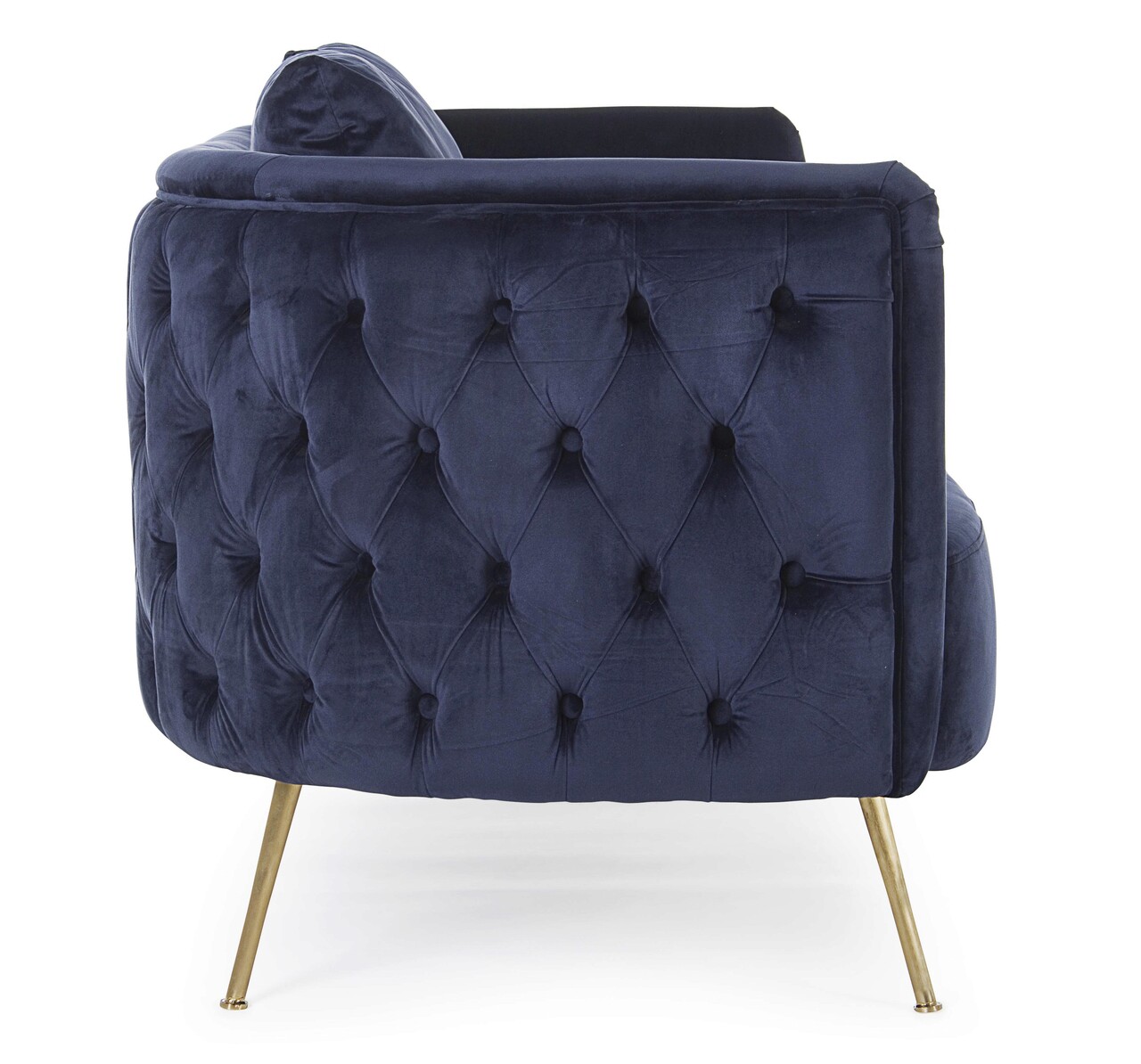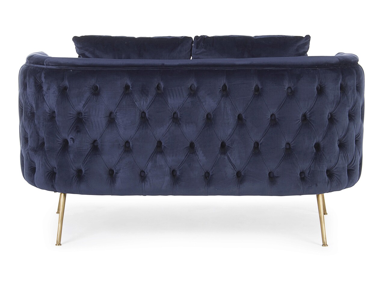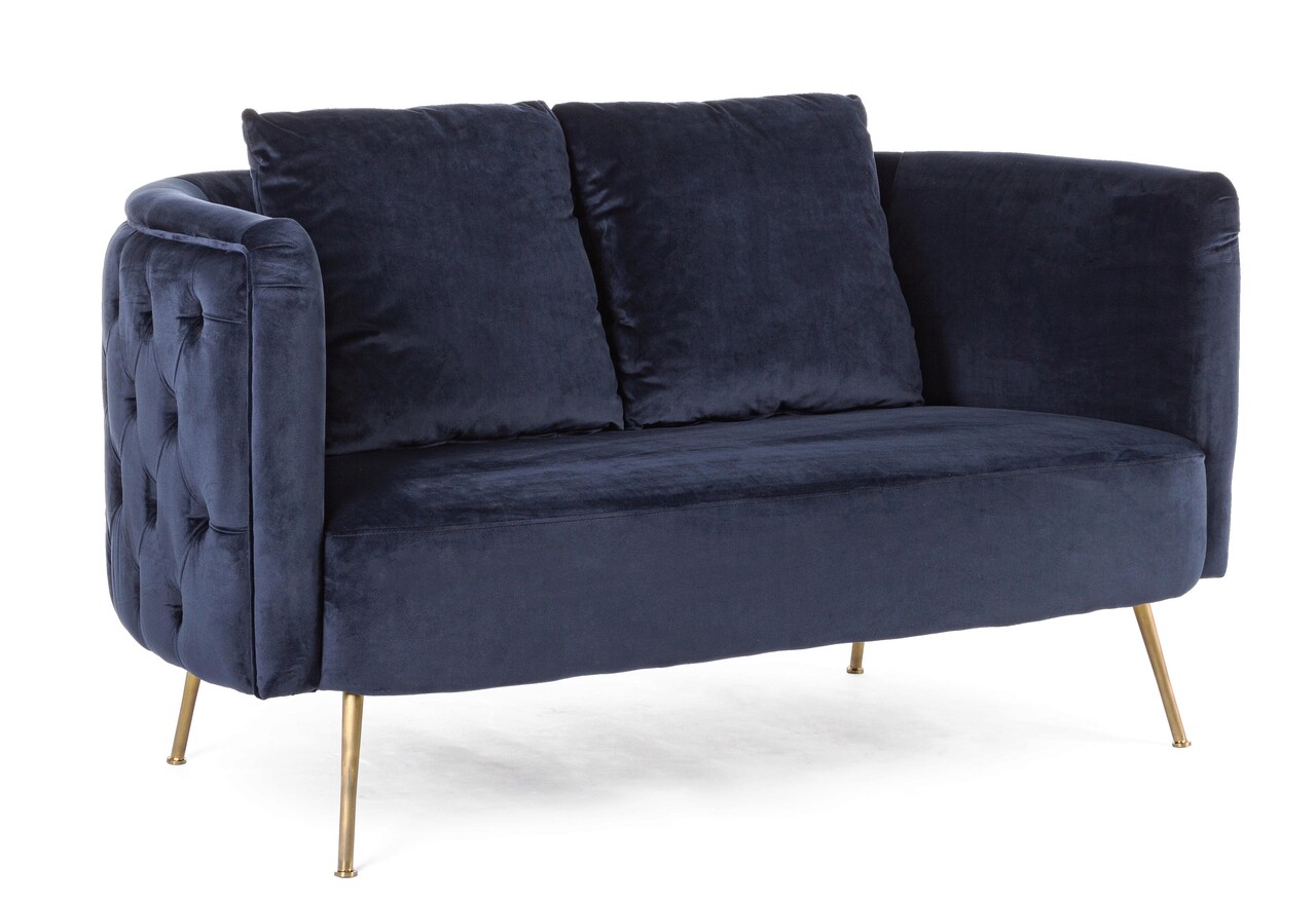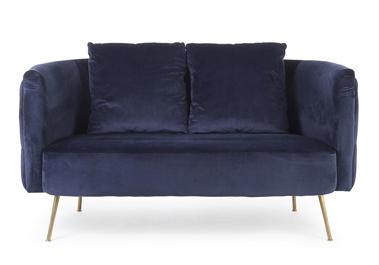 Canapea 2 locuri Tenbury, Bizzotto, 144x77x79.5 cm, lemn de frasin/otel/catifea, albastru inchis