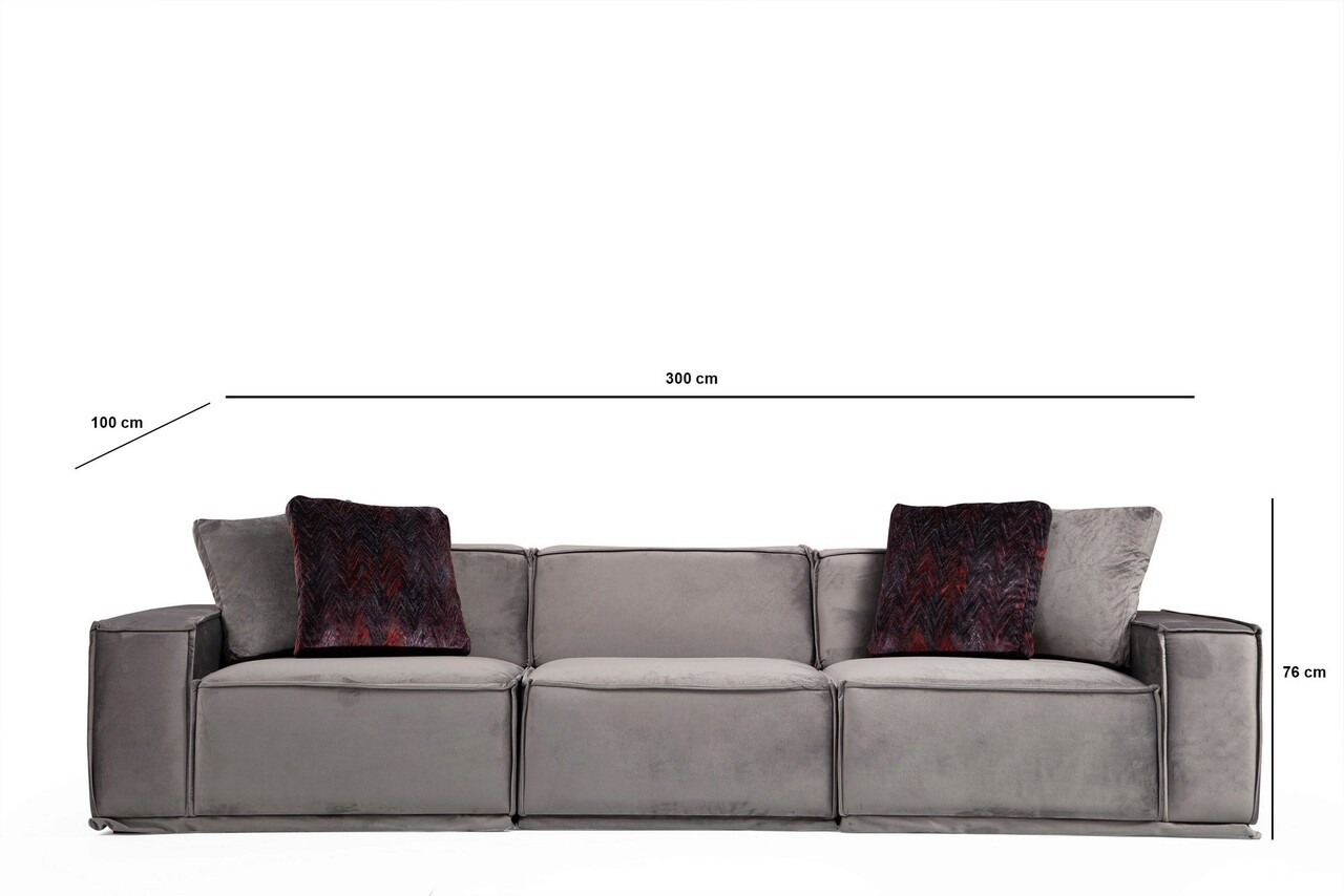 Canapea 3 locuri, Artie, 560ARE1184, Lemn de fag / PAL, Gri