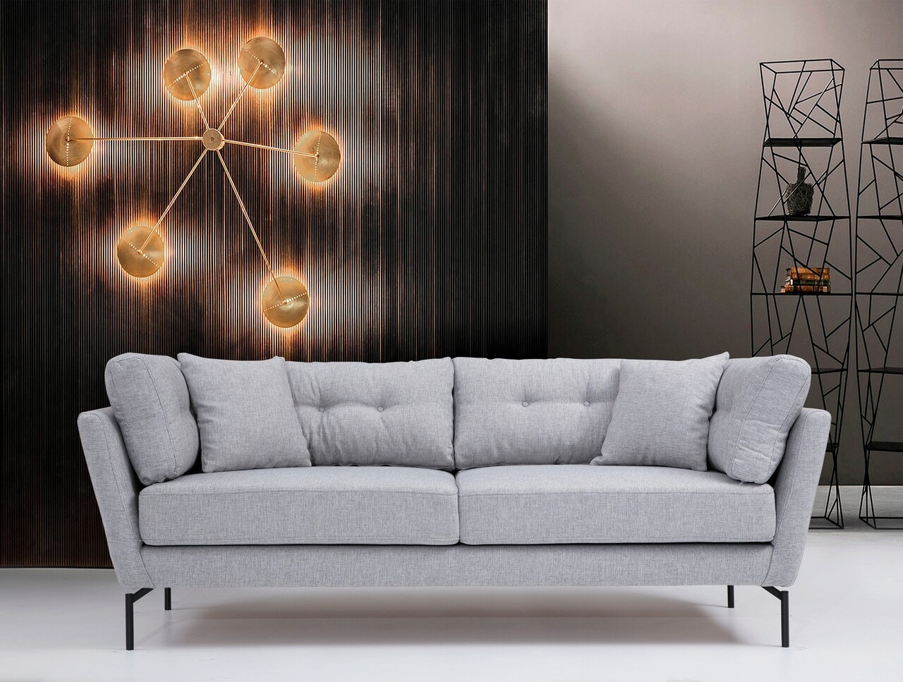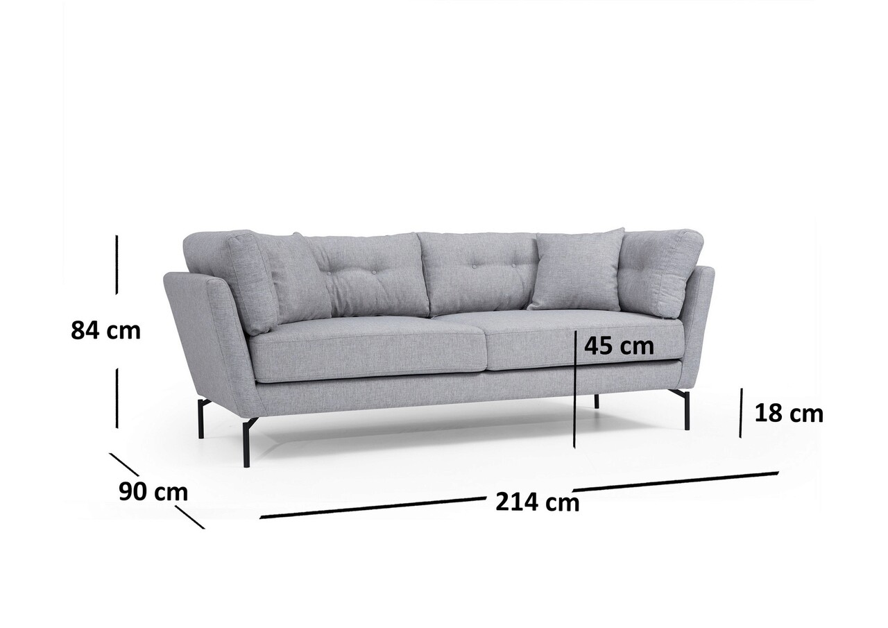 Canapea 3 locuri, Artie, 560ARE1304, Lemn de fag / PAL, Gri