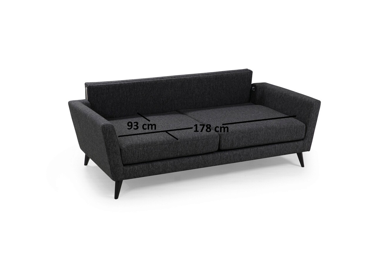 Canapea 3 locuri, Artie, 560ARE1305, Lemn de fag / PAL, Gri inchis