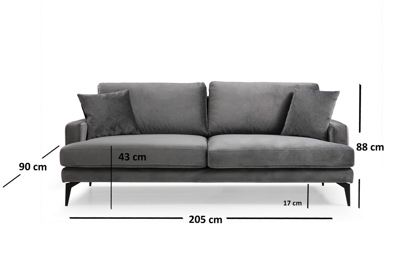Canapea 3 locuri, Artie, 560ARE1309, Lemn de fag / PAL, Gri