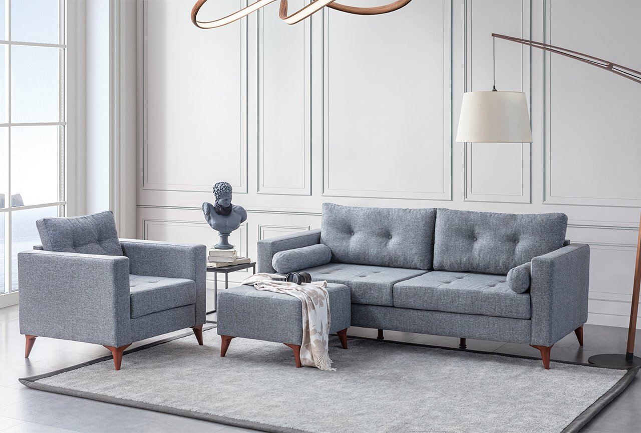 Canapea 3 locuri, Atelier del Sofa, 752EST1106, Lemn de carpen;PAL, Gri