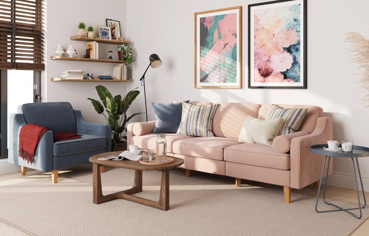 Canapea 3 locuri, Atelier del Sofa, 918CMF1165, Otel, Somon / Nucă