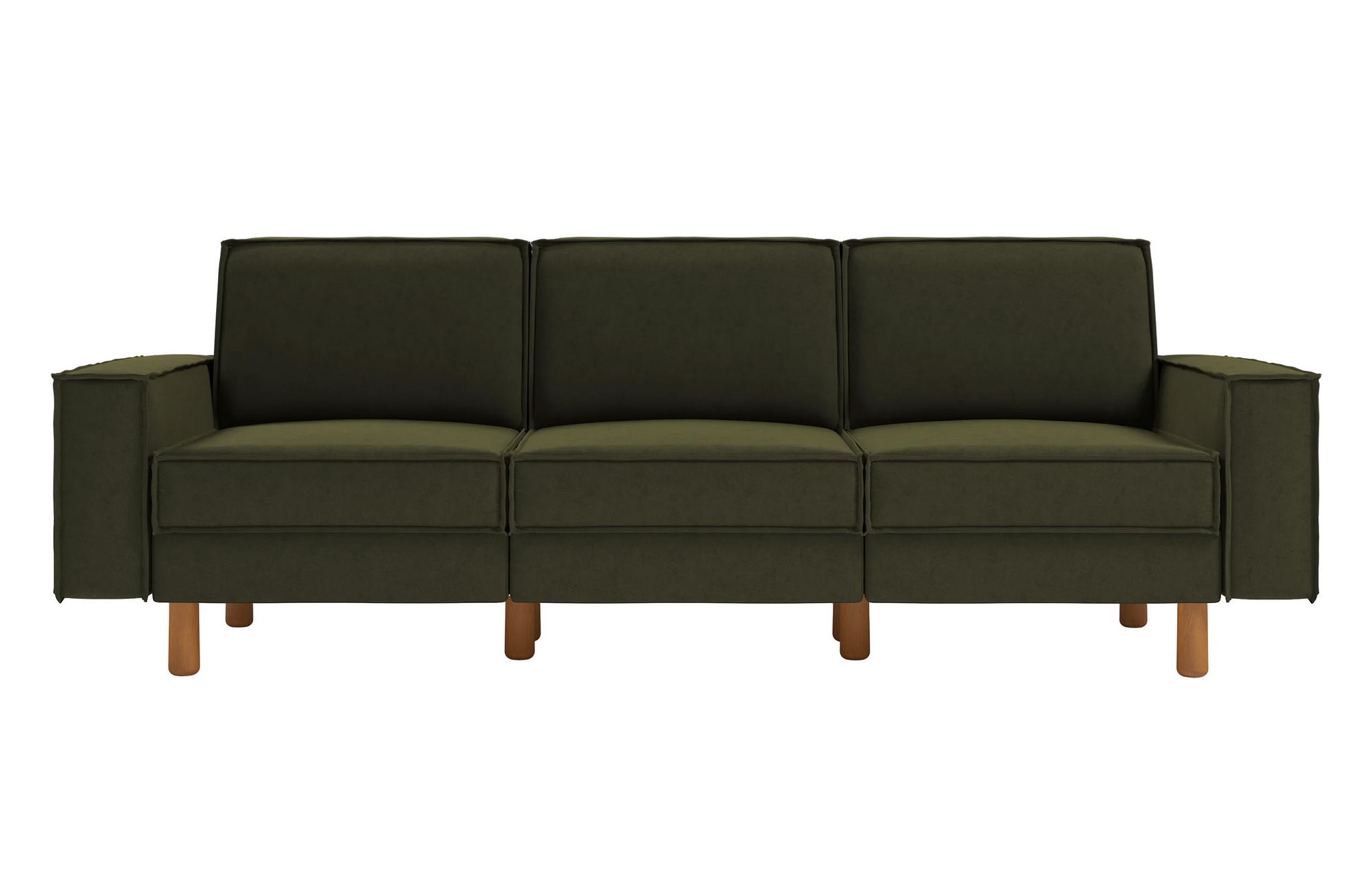 Canapea 3 locuri, Atelier del Sofa, 918CMF1252, Cadru: 100% OȚEL, Verde ulei / Nuc