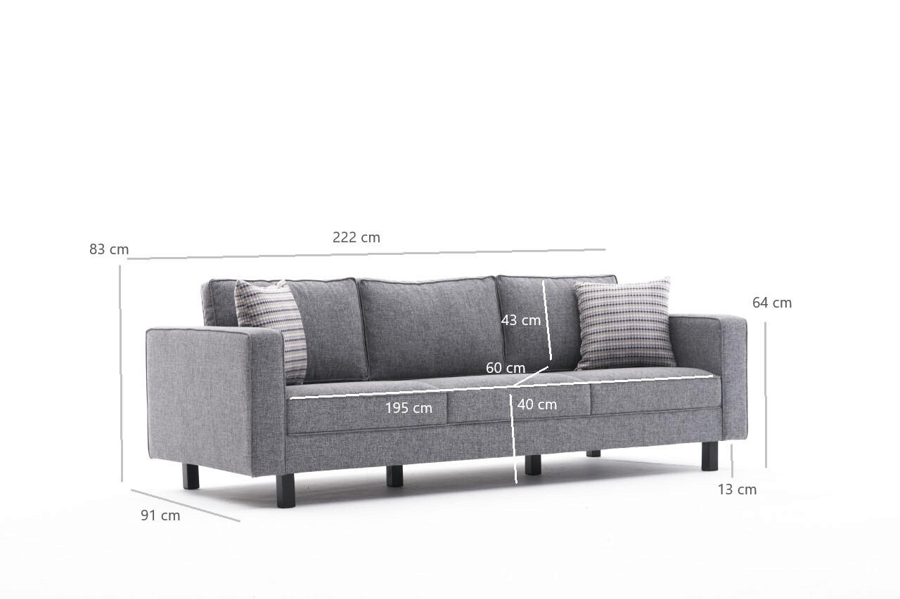 Canapea 3 locuri, Balcab Home, 825BLC2731, Lemn de fag, Gri