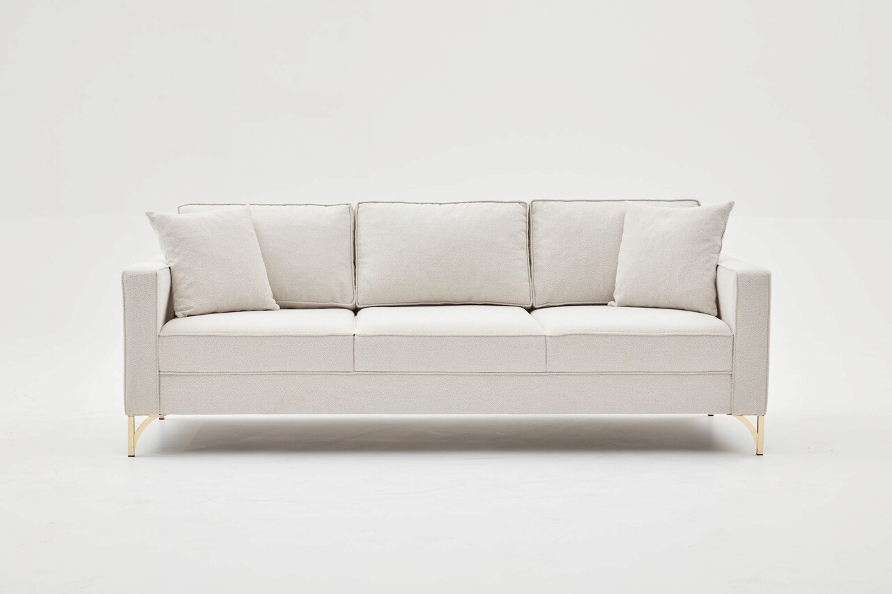Canapea 3 locuri, Balcab Home, 825BLC2797, Lemn de fag, Crem / Aur