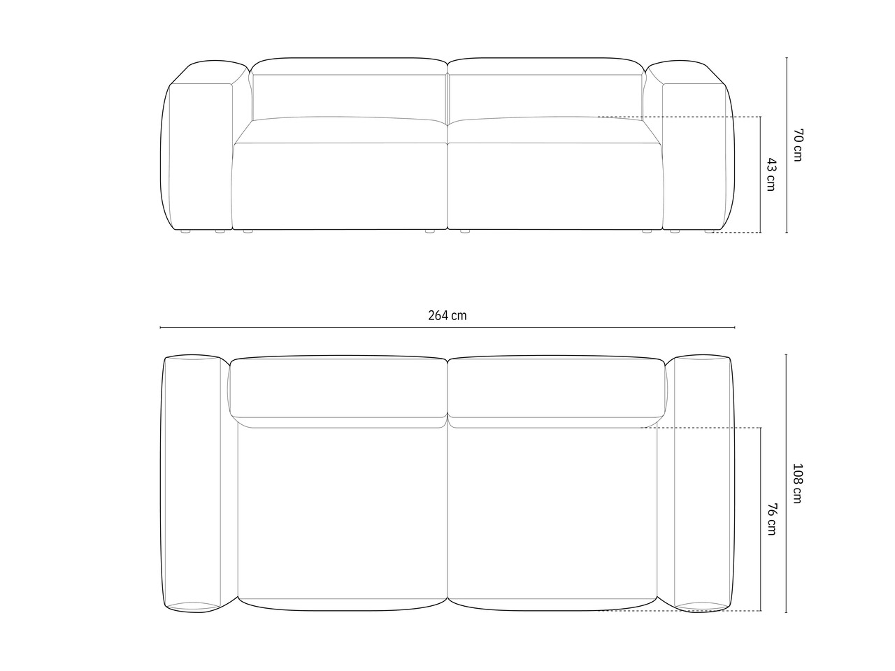 Canapea 3 locuri, Bergamo, Cosmopolitan Design, 264x108x70 cm, catifea chenille raiata, ivoriu