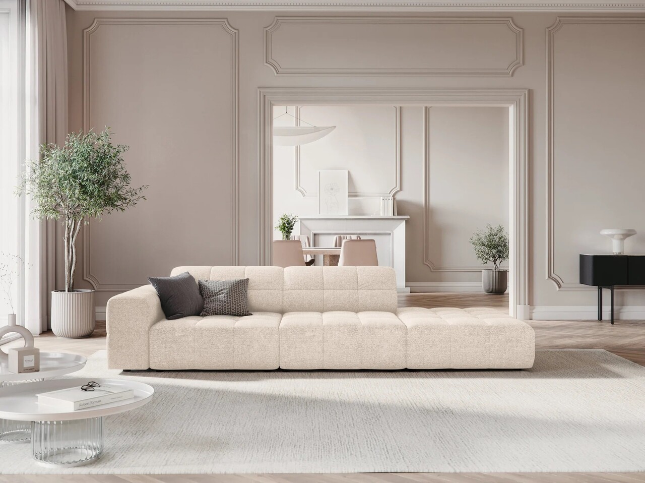Canapea 3 locuri cotiera dreapta, Jennifer-140, Micadoni Home, 262x102x70 cm, tesatura chenille din poliester, bej deschis