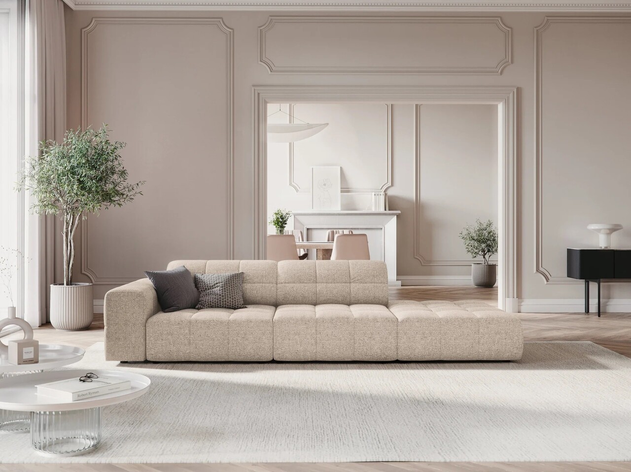 Canapea 3 locuri cotiera dreapta, Jennifer-140, Micadoni Home, 262x102x70 cm, tesatura chenille din poliester, bej