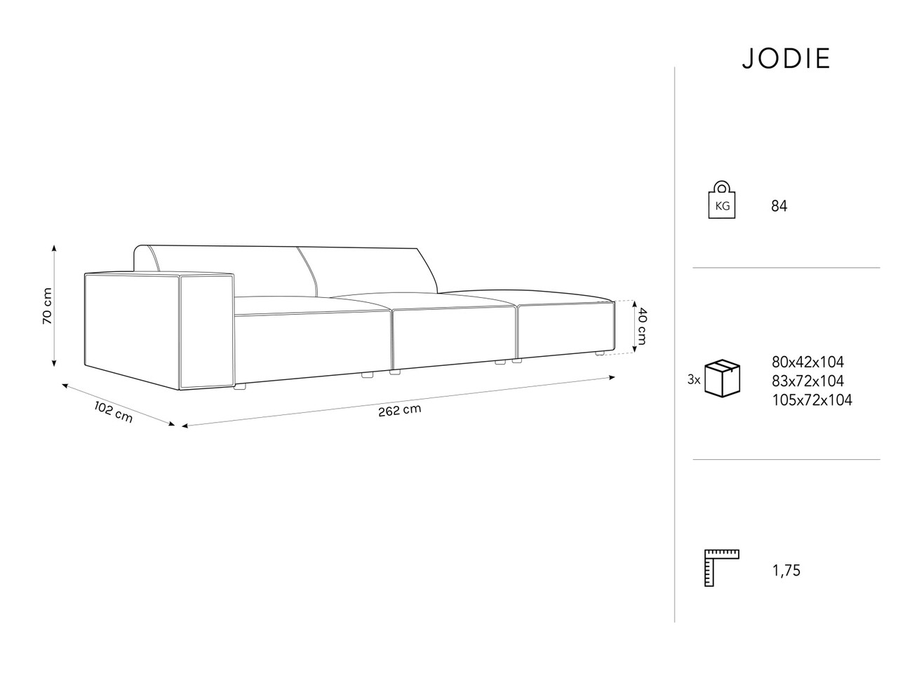 Canapea 3 locuri cotiera dreapta, Jodie, Micadoni Home, BL, 262x102x70 cm, poliester, negru