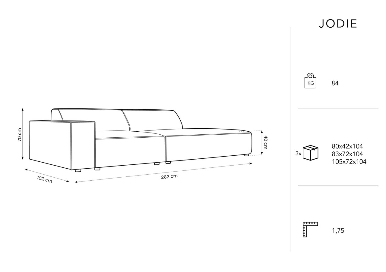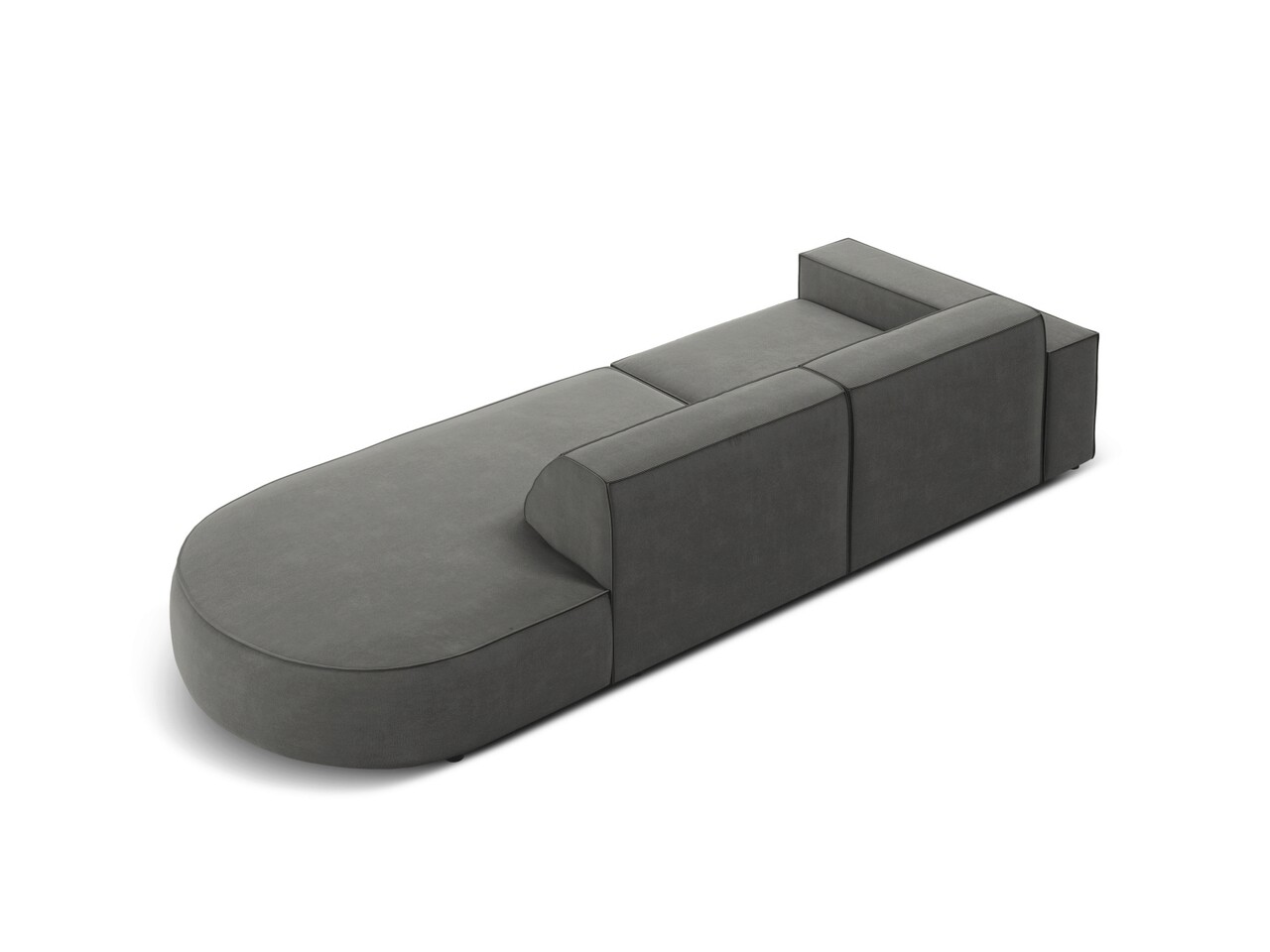 Canapea 3 locuri cotiera dreapta, Jodie, Micadoni Home, BL, forma rotunjita, 262x102x70 cm, catifea, gri deschis