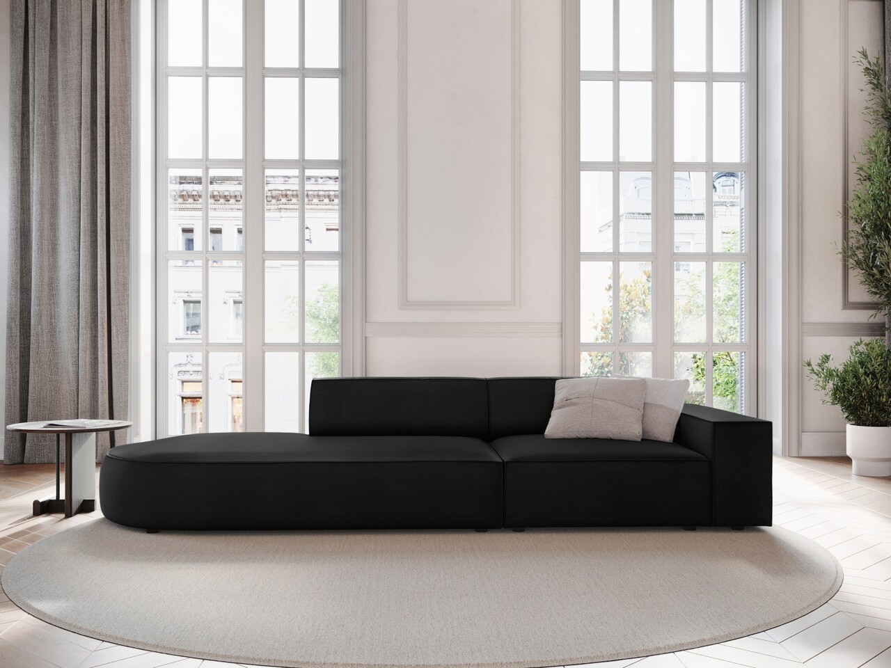 Canapea 3 locuri cotiera stanga, Jodie, Micadoni Home, BL, forma rotunjita, 262x102x70 cm, catifea, negru