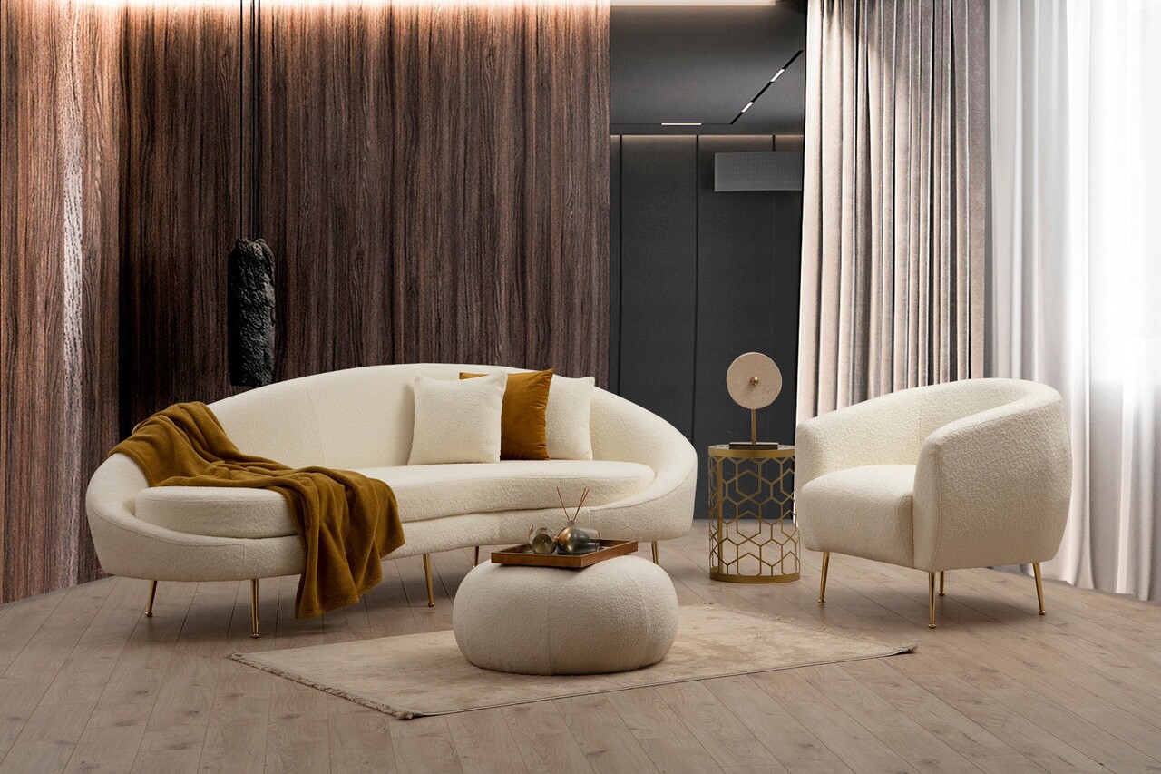 Canapea 3 locuri, Hilena, 569HLN1116, Lemn de fag / PAL, Crem