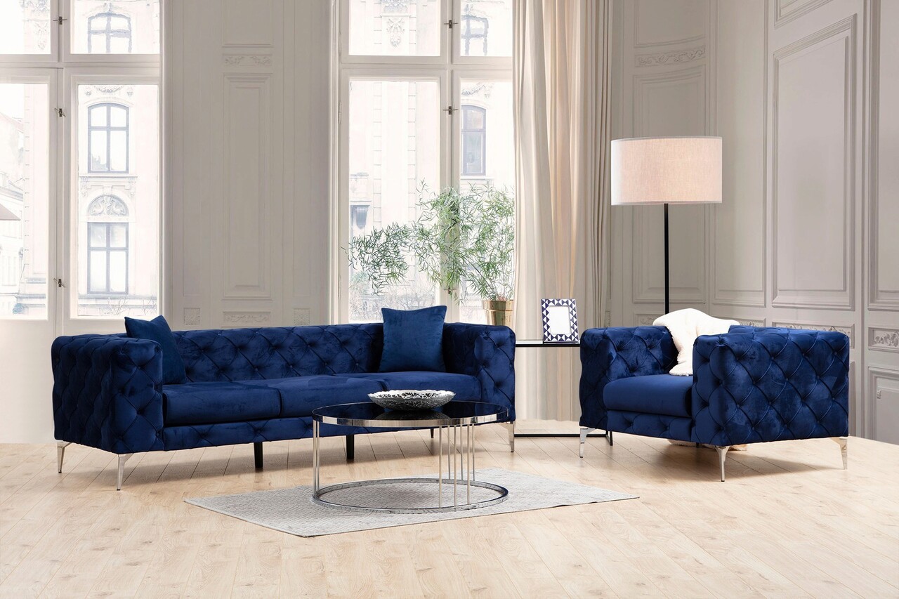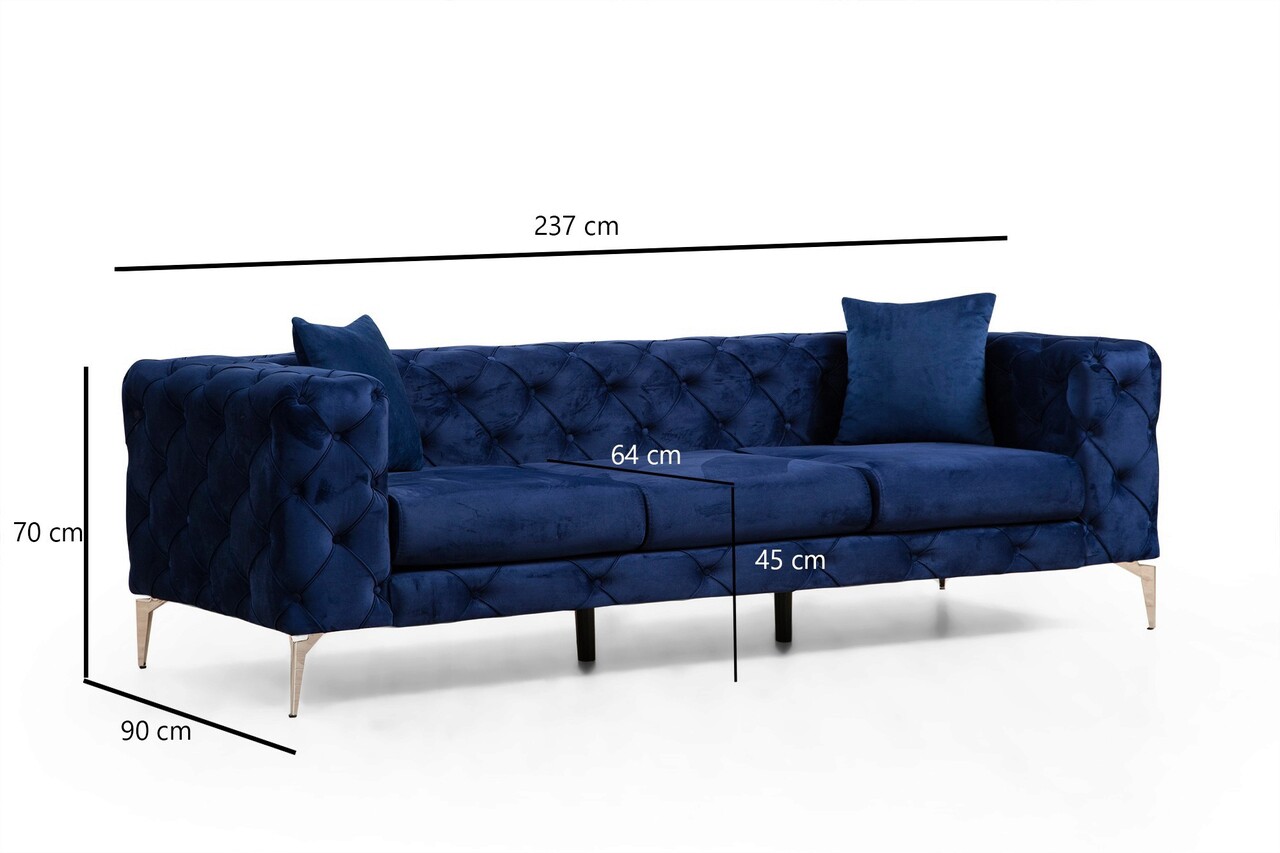 Canapea 3 locuri, Hilena, 569HLN1129, Lemn de fag / PAL, Albastru navy