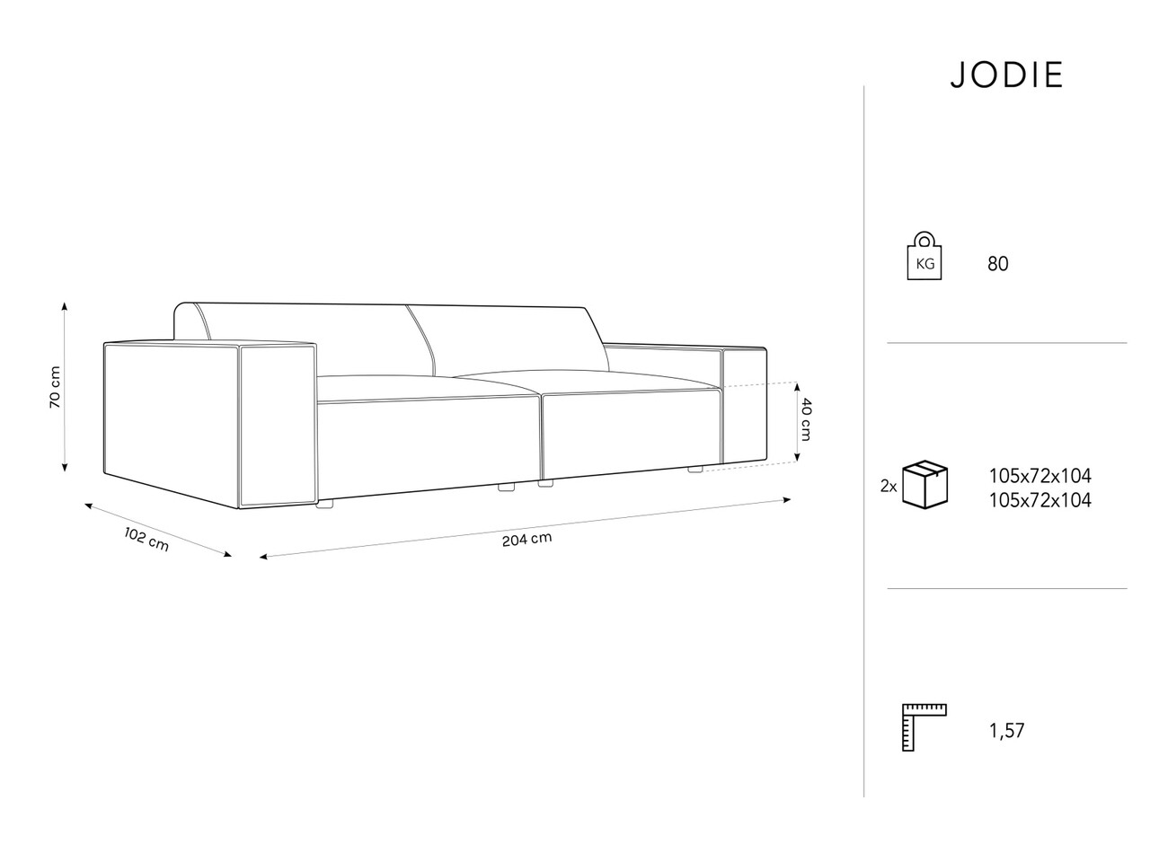 Canapea 3 locuri, Jodie, Micadoni Home, BL, 204x102x70 cm, poliester, gri deschis