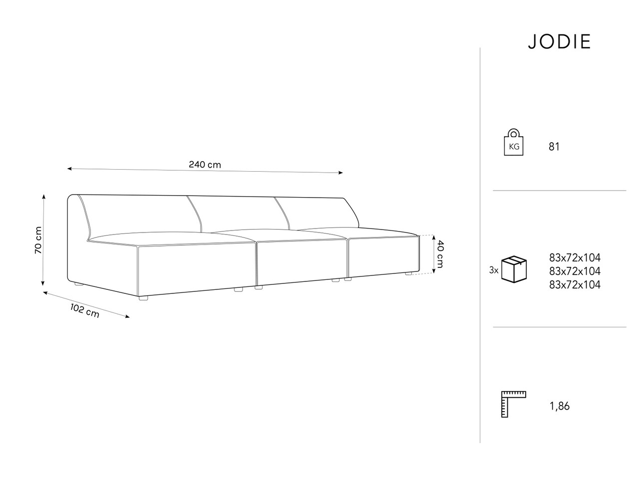 Canapea 3 locuri, Jodie, Micadoni Home, BL, 240x102x70 cm, catifea, bej deschis