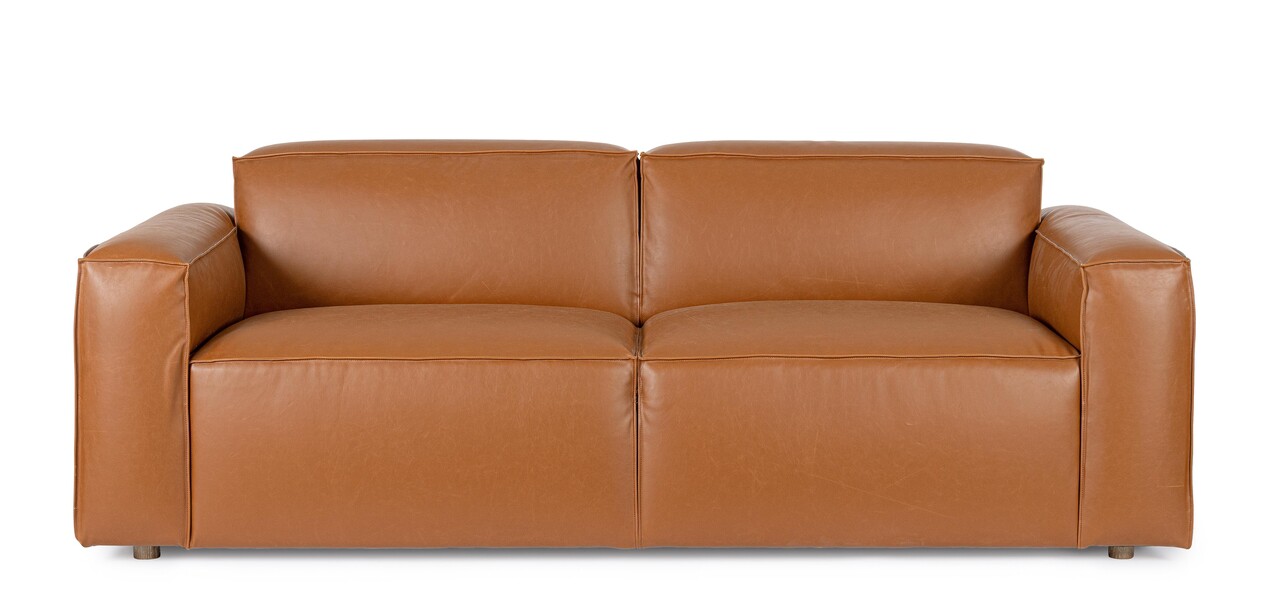 Canapea 3 locuri Joseph, Bizzotto, 216x94x77 cm, piele ecologica/lemn frasin, teracota