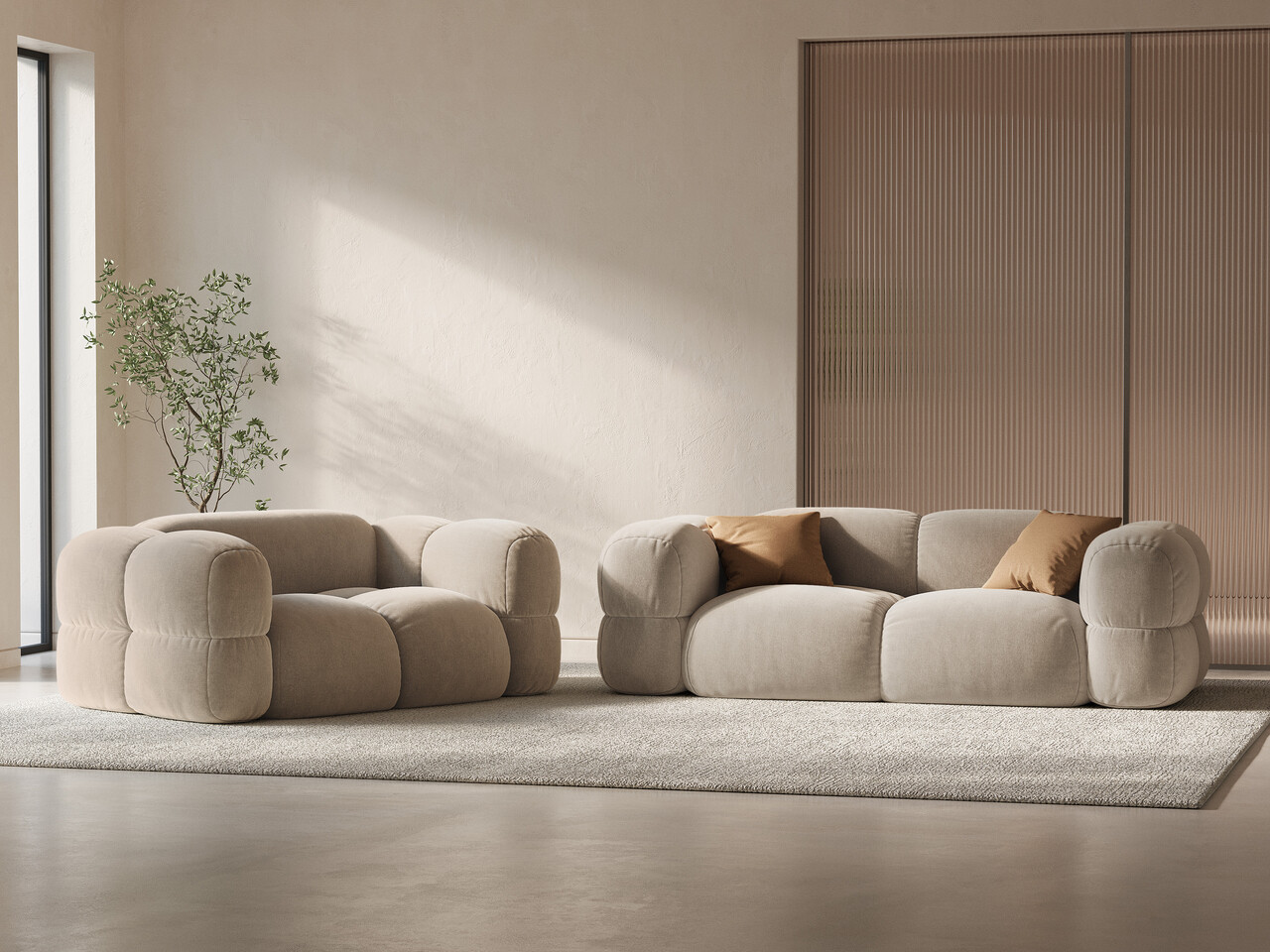 Material de catifea de inalta calitate - dens si consistent, cu un aspect deosebit de elegant. Spre deosebire de catifelele clasice, uniforme, acest material se remarca printr-o structura subtila, vizibila, dar aproape imperceptibila la atingere. Suprafata este moale si placuta, acoperita cu un puf delicat si un luciu discret. Tonurile usor umbrite ale fibrei creeaza un efect vizual interesant, care ofera tapiteriei un caracter distinct si rafinat.