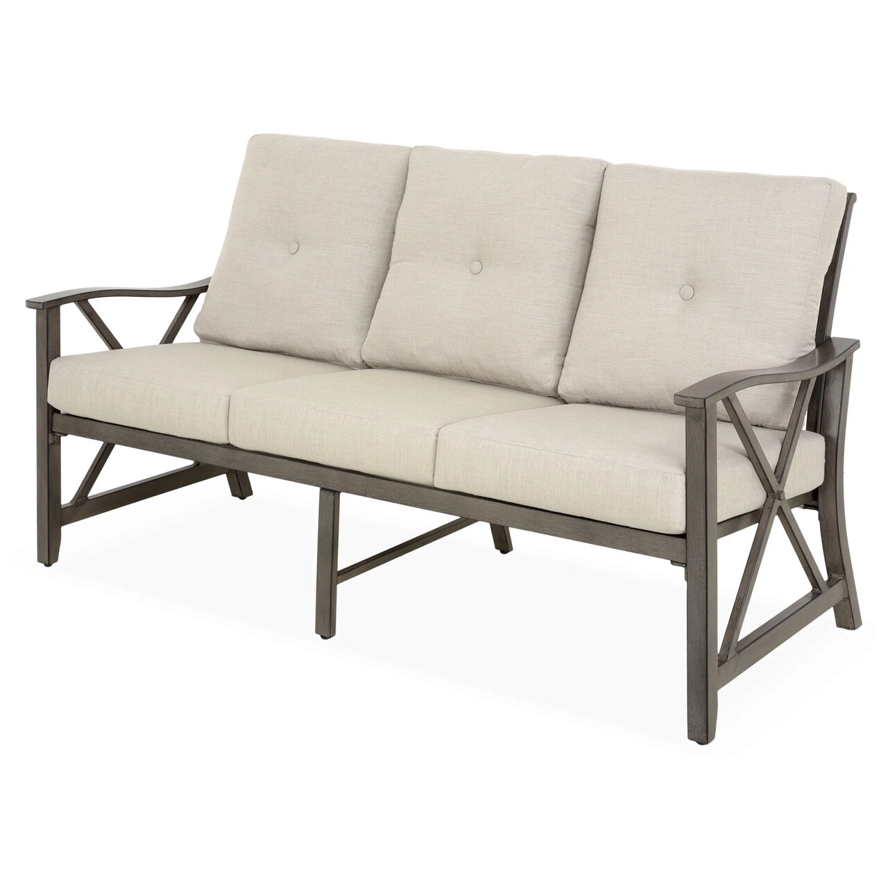 Canapea 3 locuri pentru gradina Bridgeman, 168x80x92.3 cm, aluminiu, bej/negru