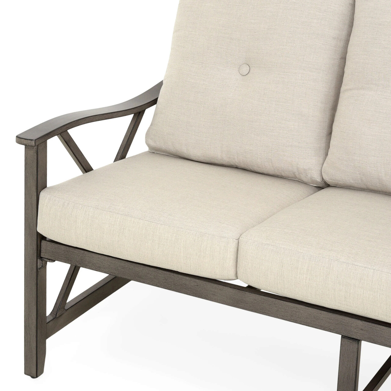 Realizata din structura solida de aluminiu vopsita in camp electrostatic. Include perne din poliuretan imbracate cu tesatura Sunbrella cu protectie UV si impotriva umezelii. Husele sunt prevazute cu fermoar pentru a fi mai usor de indepartat si curatat.