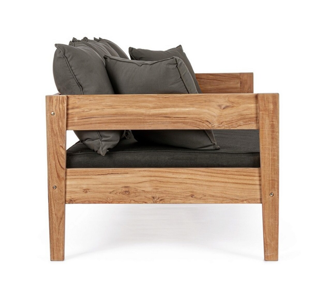 Canapea 3 locuri pentru gradina/terasa Kobo, Bizzotto, 190 x 90 x 79 cm, lemn de tec certificat Fsc/tesatura Arashi, gri carbune