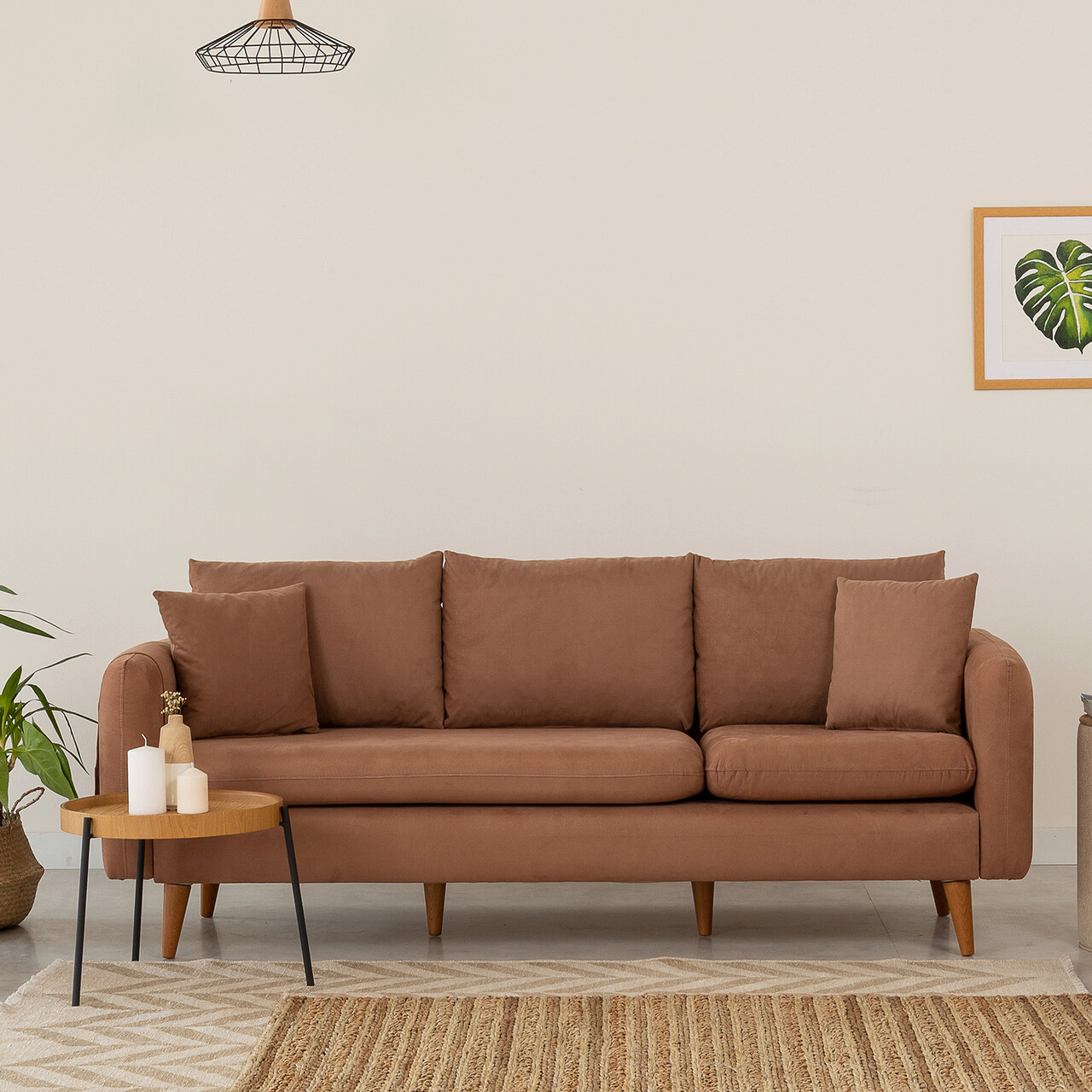 Canapea 3 locuri, Unique Design, 867UNQ1354, Lemn de pin, Maro