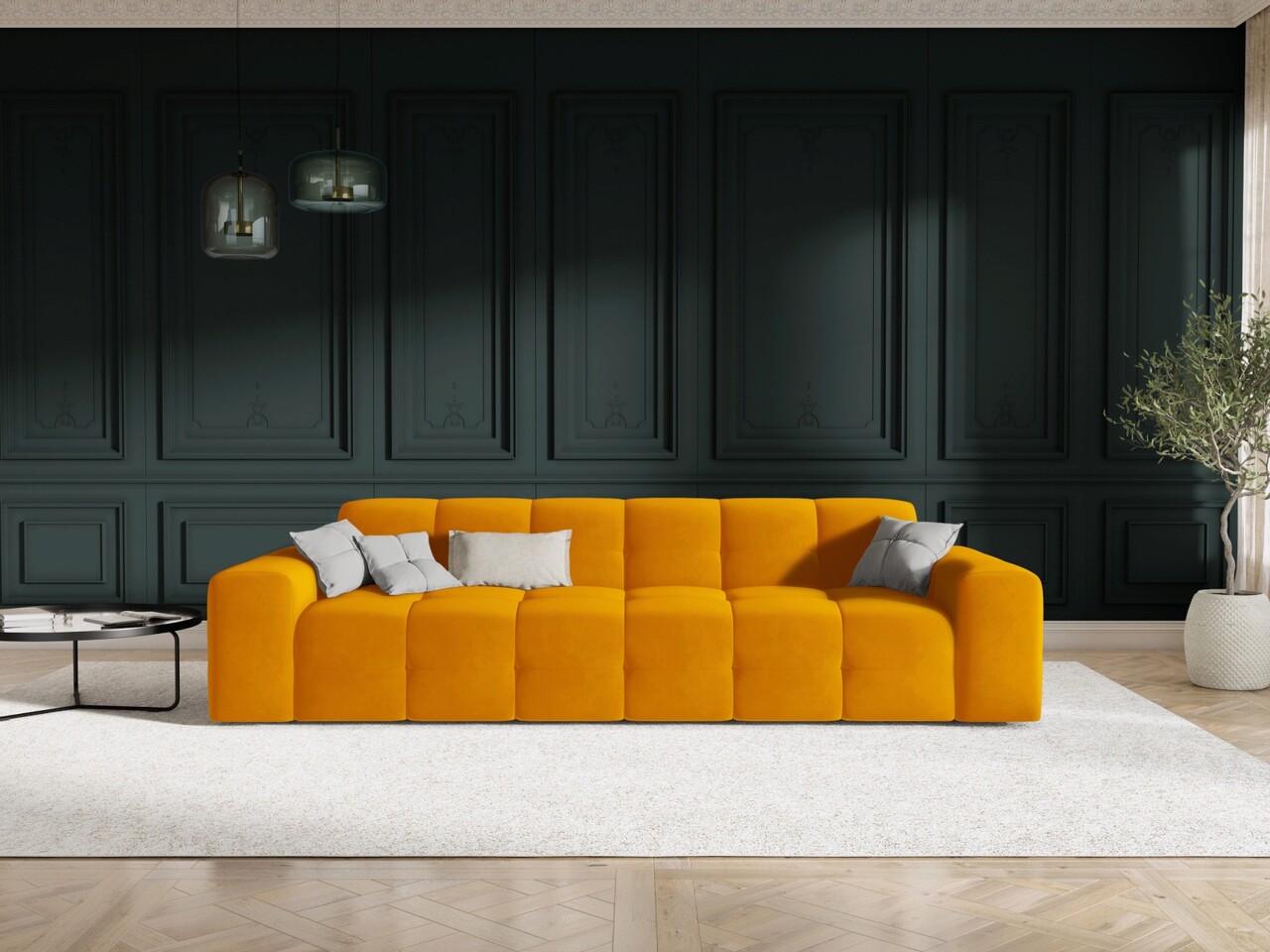 Canapea 4 locuri, Kendal, Micadoni Home, BL, 255x103x79 cm, catifea, portocaliu