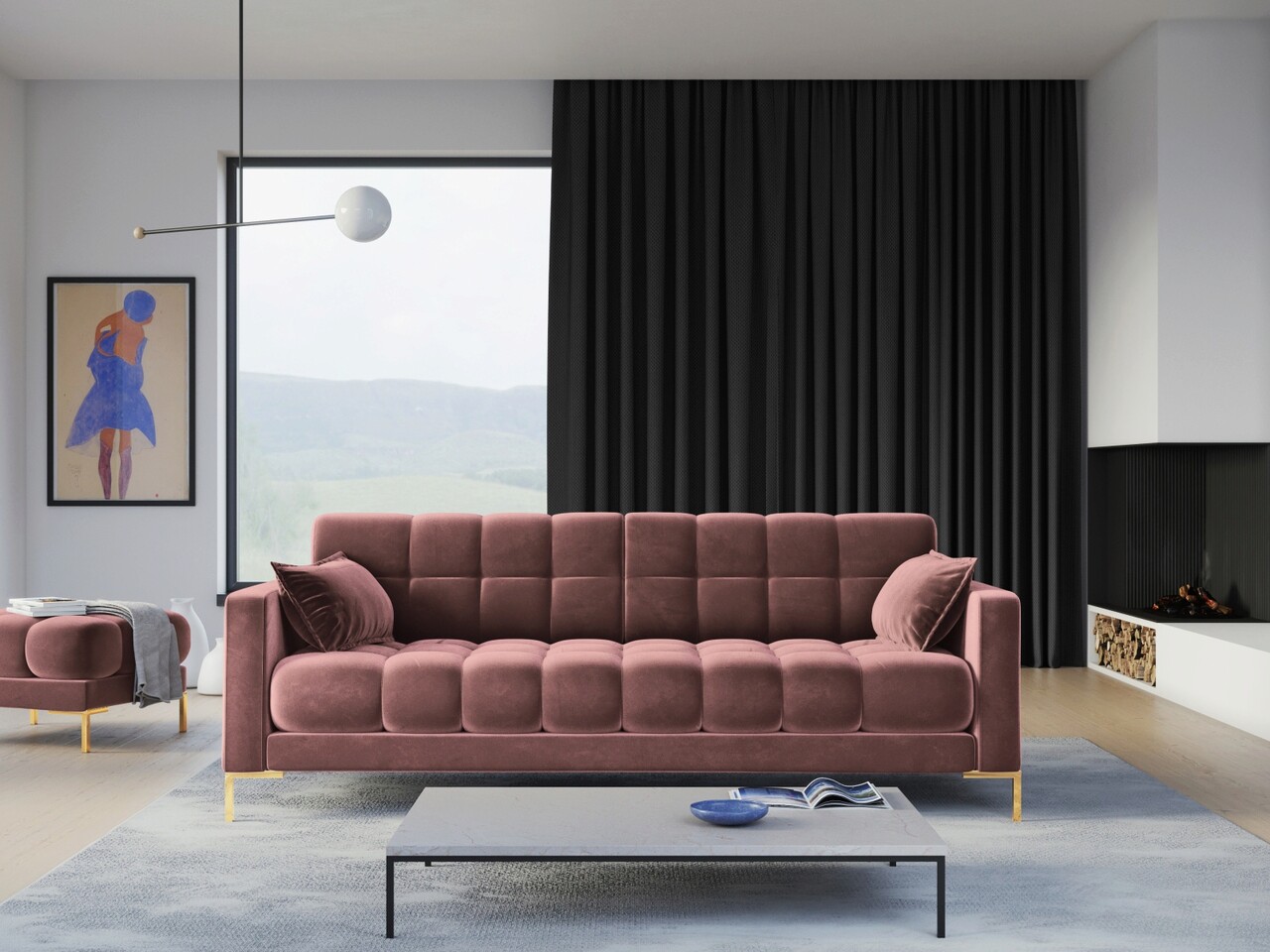 Canapea 4 locuri, Mamaia, Micadoni Home, GL, 217x92x75 cm, catifea, roz