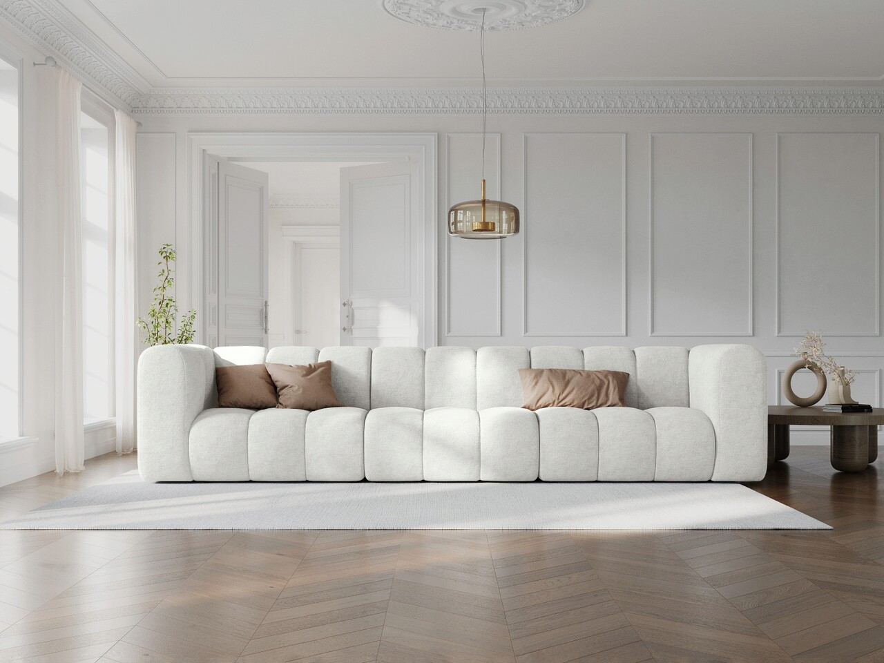 Canapea 5 locuri, Lupine, Micadoni Home, BL, 318x87x70 cm, poliester chenille, alb