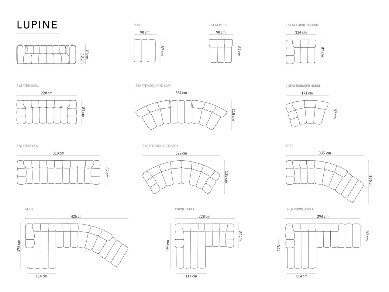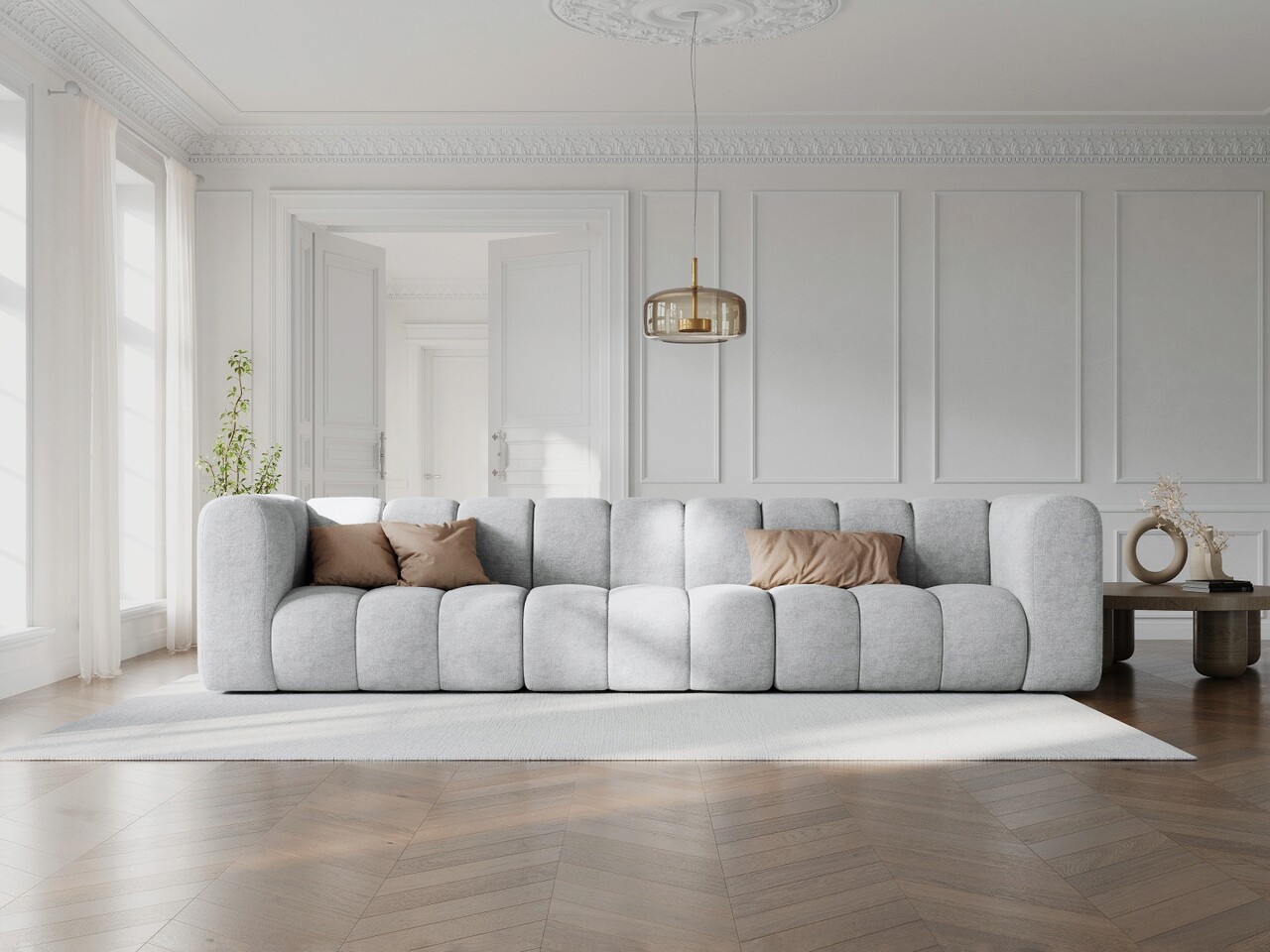 Canapea 5 locuri, Lupine, Micadoni Home, BL, 318x87x70 cm, poliester chenille, gri deschis
